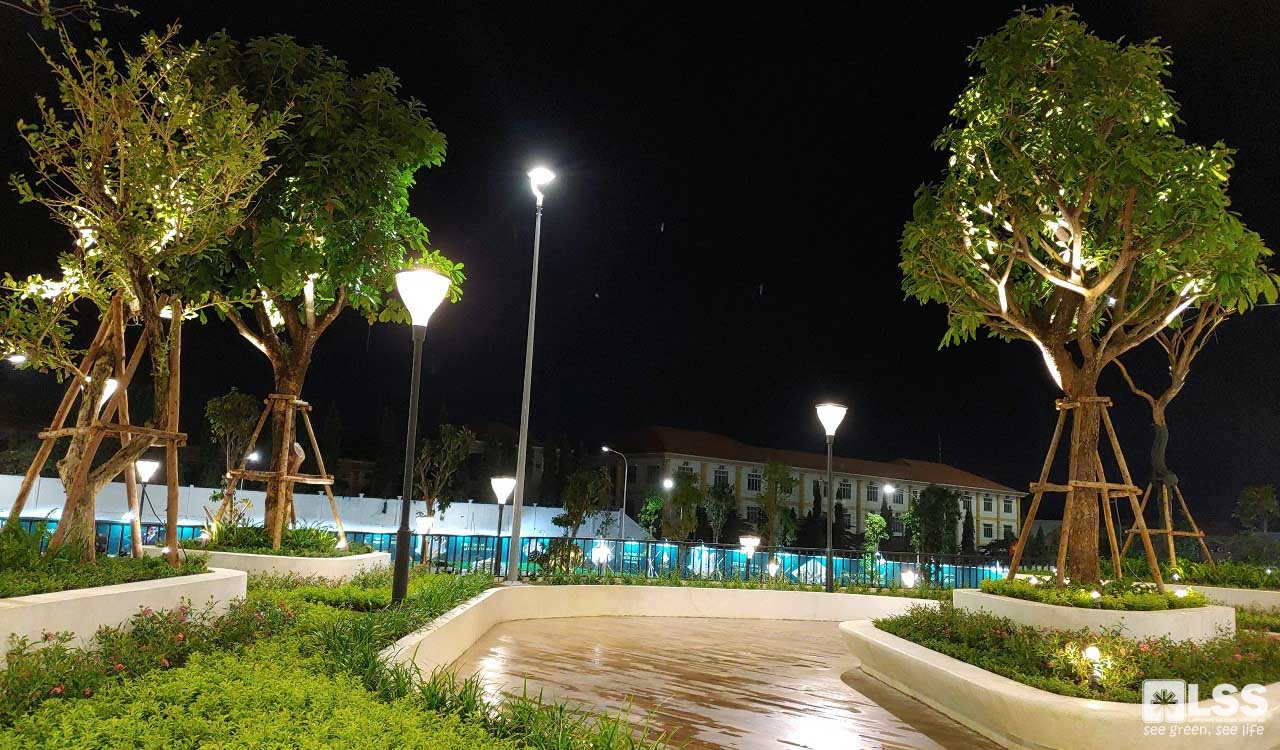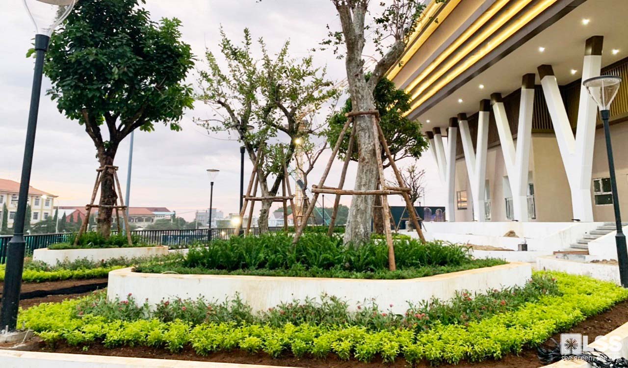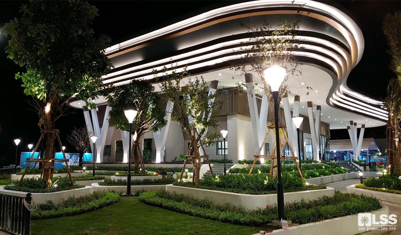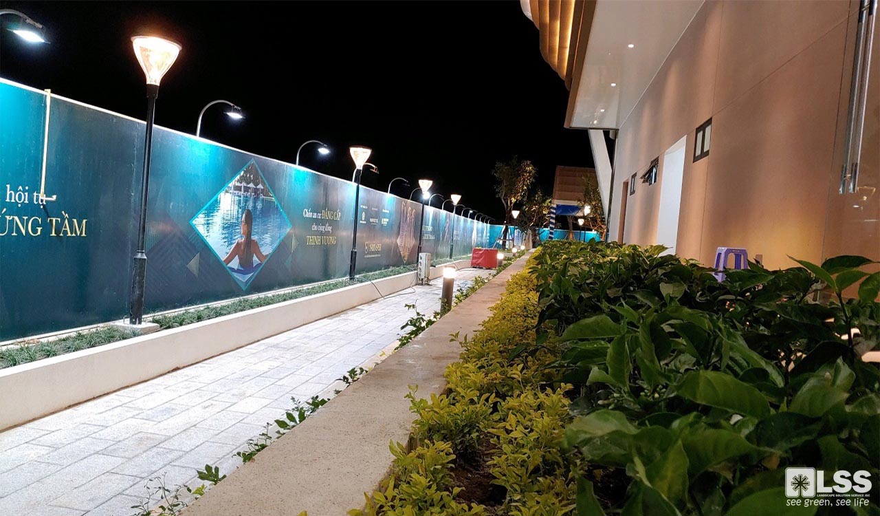 Cùng với tiêu chí “phồn hoa hội tụ, kết nối xứng tầm” nên hạng mục cảnh quan khu căn hộ chắc chắn cũng phải được đầu tư rất kỹ lưỡng. Các cây trồng lớn, cây bóng mát được nhà thầu LSS lựa chọn gắt gao từ vườn ươm với các cá thể Chà Là, Nguyệt Quế,… khỏe mạnh và thẩm mỹ nhất. Bên cạnh đó các loại cây bụi cũng được chăm chút đáp ứng đúng mật độ phủ xanh và màu sắc bắt mắt.Cùng với đội ngũ thi công đông đảo và lành nghề, tất cả các khâu từ vận chuyển trồng cây đến bảo dưỡng đều được LSS tiến hành chỉnh chu và đáp ứng đúng tiến độ, đảm bảo thời gian bàn giao nghiệm thu cho chủ đầu tư.