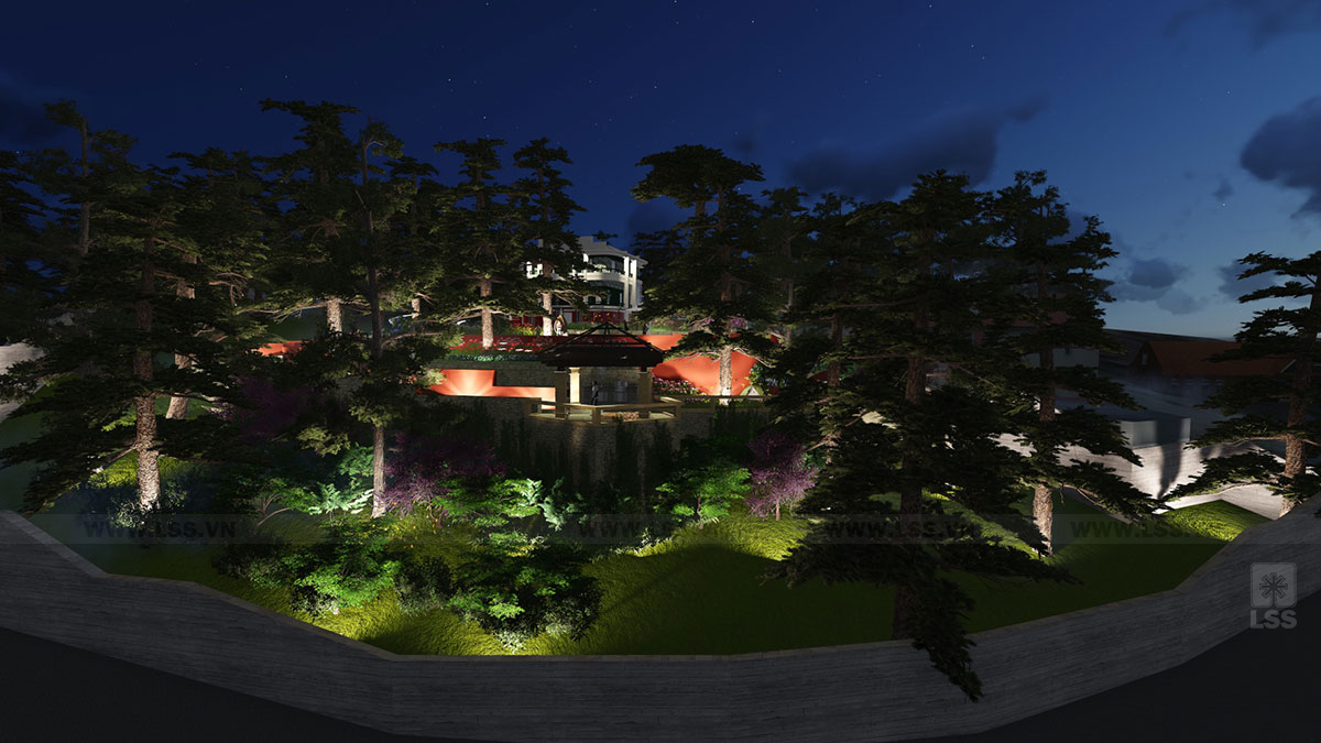 Khi đêm xuống, hệ thống đèn được bố trí tinh tế tiếp tục làm nổi bật sắc hoa và dẫn hướng trên sườn đồi. Ở bất kỳ địa phương nào, LSS luôn tôn trọng địa hình – khí hậu bản địa để tạo nên những thiết kế cảnh quan độc đáo và hài hòa. Nếu bạn tìm kiếm sự giao hòa tinh tế giữa các trường phái, LSS chính là lựa chọn đáng tin cậy.