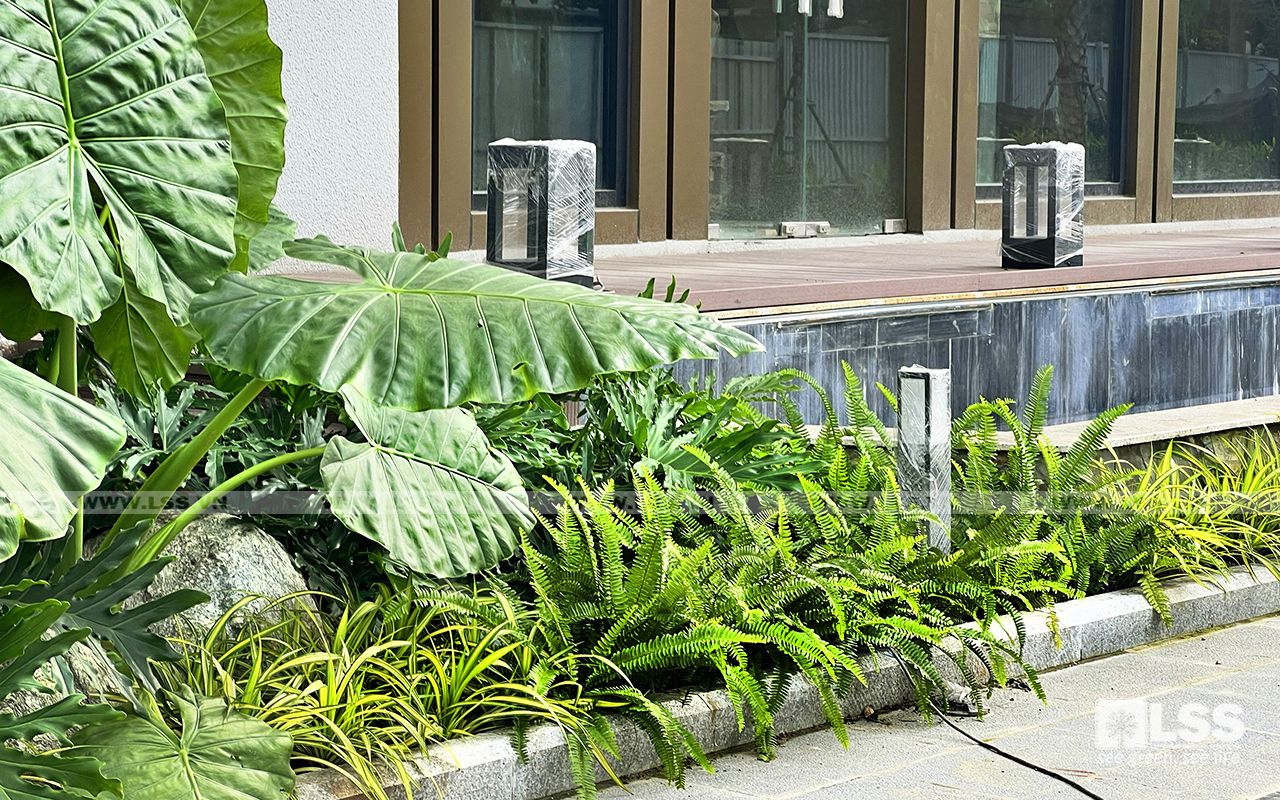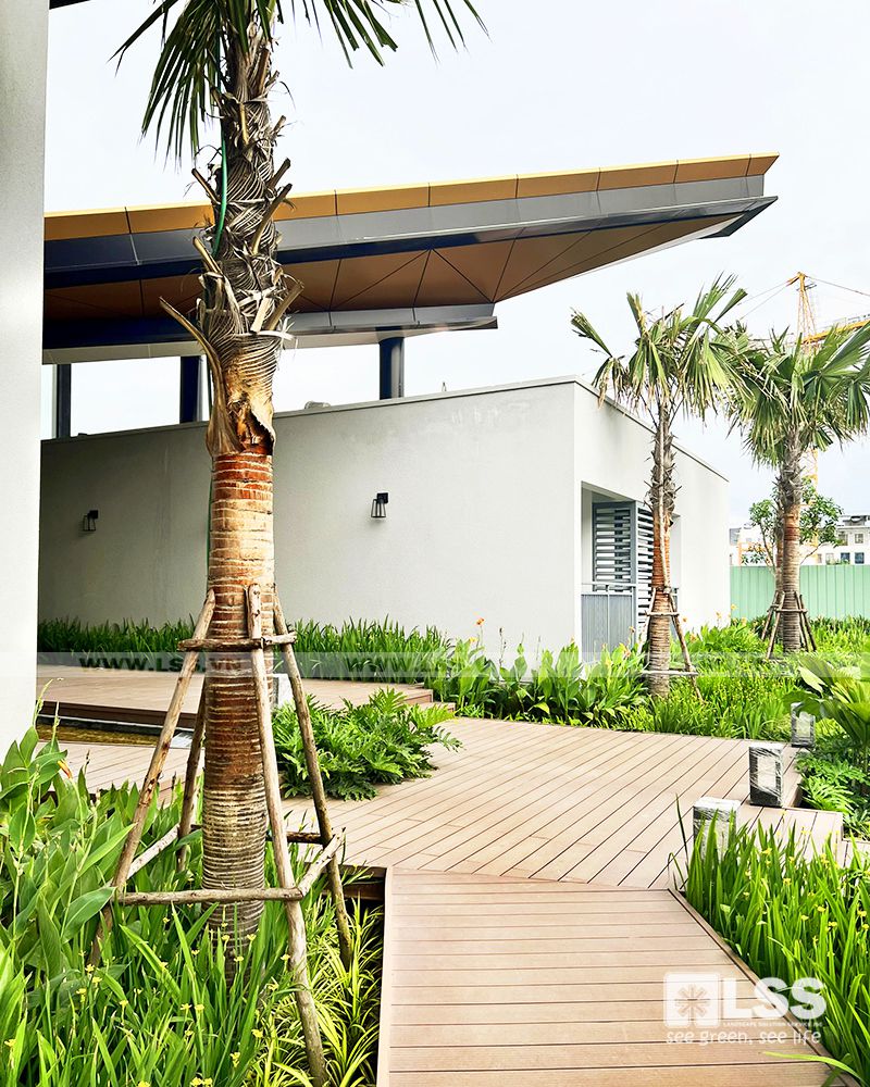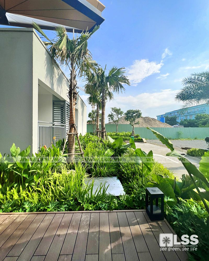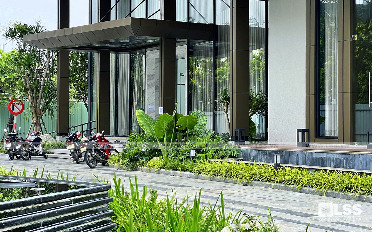 Mật độ sân vườn – cây xanh – mặt nước không chỉ đảm bảo tiêu chuẩn trên đầu người, mà còn phải thực sự thẩm mỹ và bền vững theo thời gian. Vì vậy, chỉ với 1 diện tích không quá lớn,LSS vẫn có thể tạo nên những mảng cây trồng phối kết theo phong cách nhiệt đới – hiện đại cực kỳ xanh tươi và mát mắt.