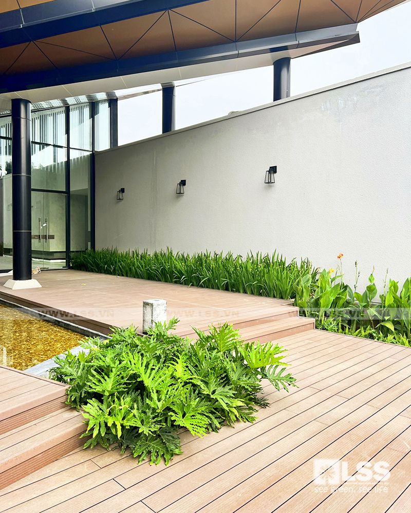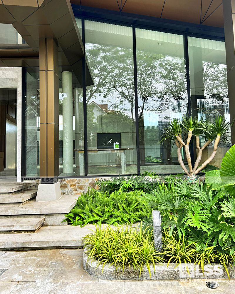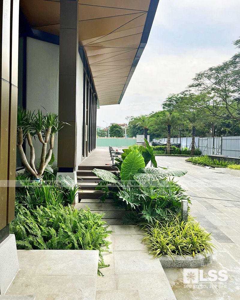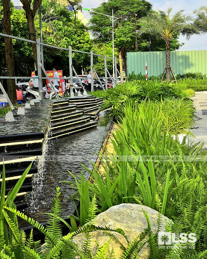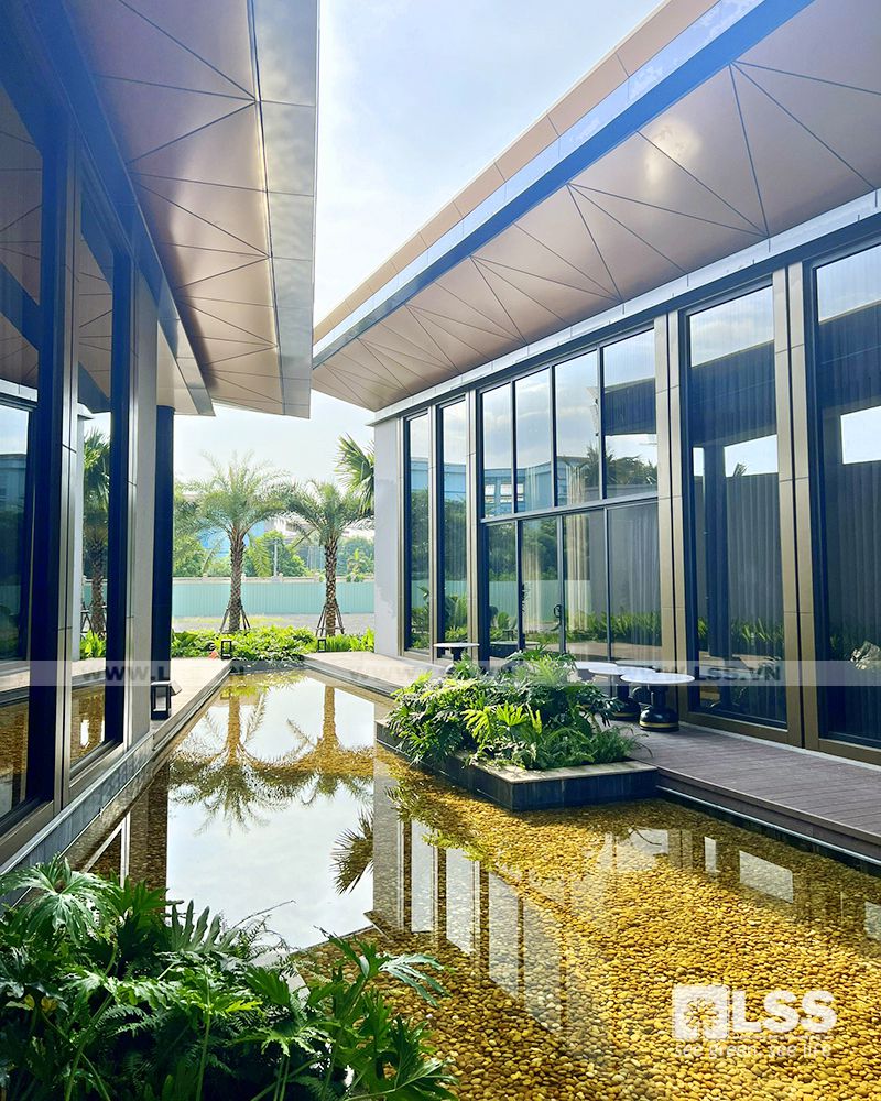 Mật độ sân vườn – cây xanh – mặt nước không chỉ đảm bảo tiêu chuẩn trên đầu người, mà còn phải thực sự thẩm mỹ và bền vững theo thời gian. Vì vậy, chỉ với 1 diện tích không quá lớn,LSS vẫn có thể tạo nên những mảng cây trồng phối kết theo phong cách nhiệt đới – hiện đại cực kỳ xanh tươi và mát mắt.
