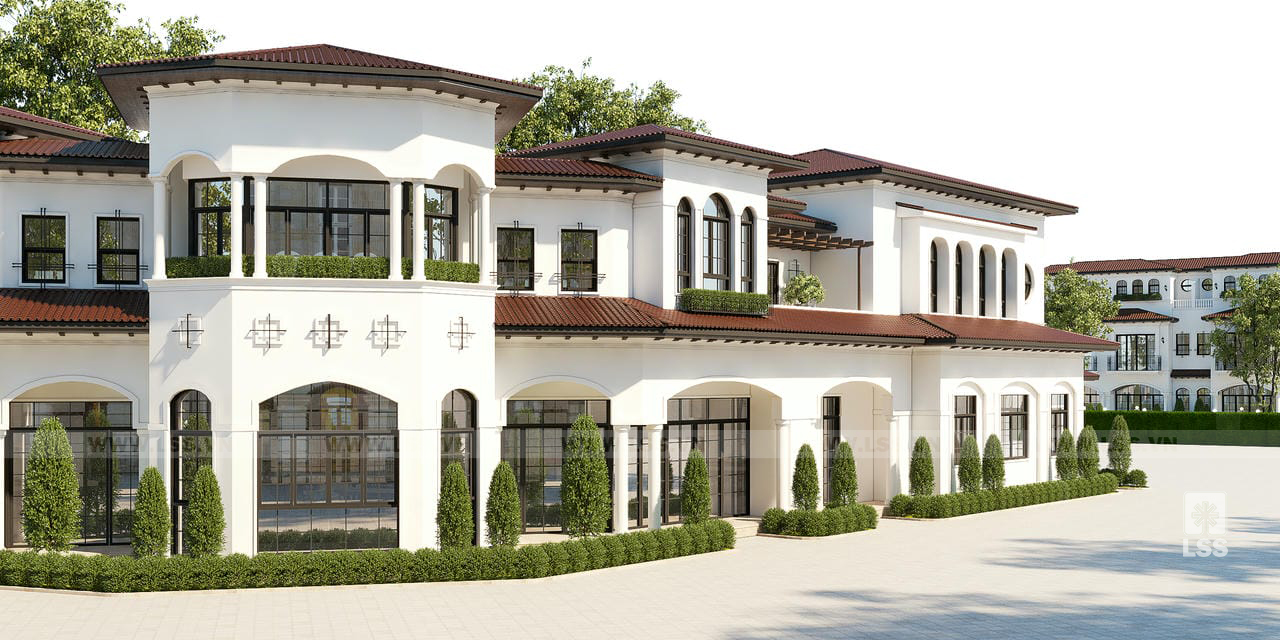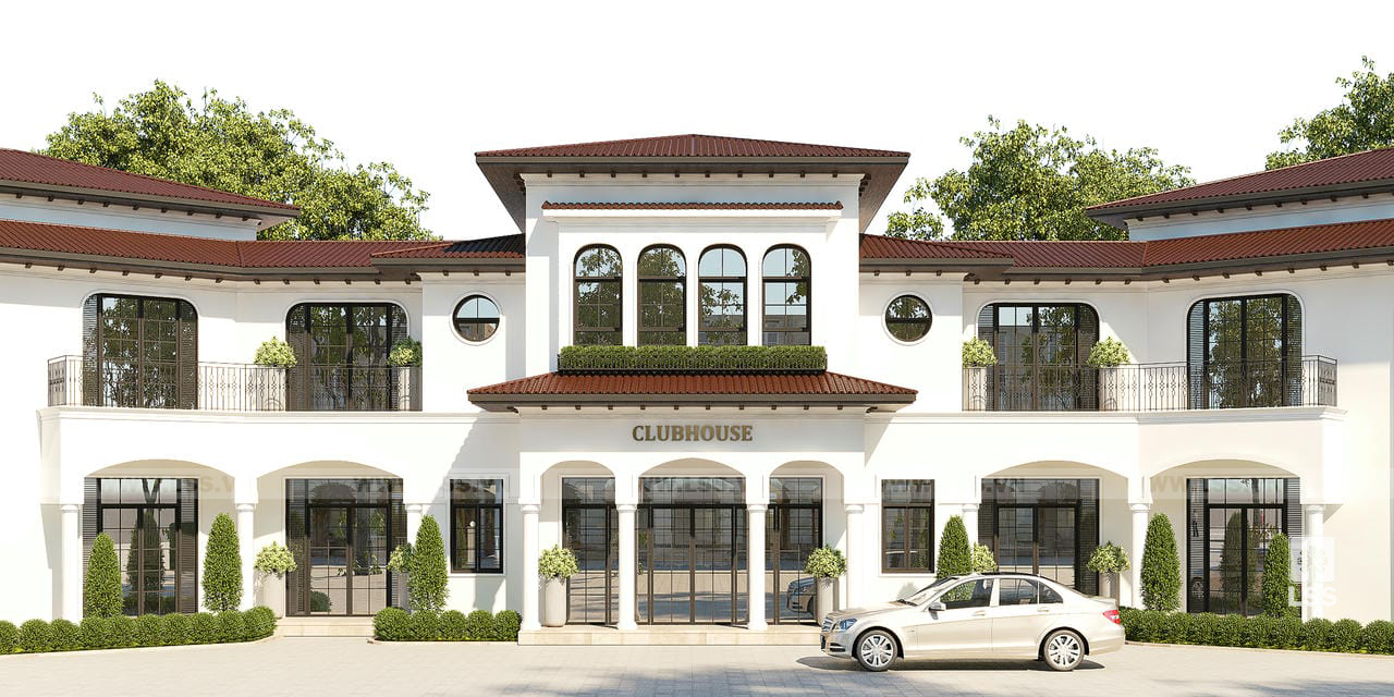 Nằm tại tâm điểm của khu dân cư The Vista City, Clubhouse do LSS thiết kế kiến trúc hiện lên như một viên ngọc kiến trúc đầy kiêu hãnh, thể hiện trọn vẹn tâm huyết của chủ đầu tư Tập đoàn Trần Anh trong việc kiến tạo không gian sống đẳng cấp cho cư dân Đức Hòa. Lấy cảm hứng từ phong cách Tân cổ điển sang trọng, LSS đã khéo léo kết hợp những hình khối kiến trúc bề thế với gam màu trắng tinh khôi và hệ mái ngói đỏ trầm ấm. Sự hòa quyện này không chỉ mang lại vẻ đẹp vượt thời gian mà còn tạo nên một cảm giác gần gũi, ấm áp ngay từ cái nhìn đầu tiên. Những ô cửa vòm cao vút và ban công rộng mở được tính toán kỹ lưỡng để đón trọn luồng gió mát lành cùng ánh sáng tự nhiên, giúp công trình luôn tràn đầy sức sống.