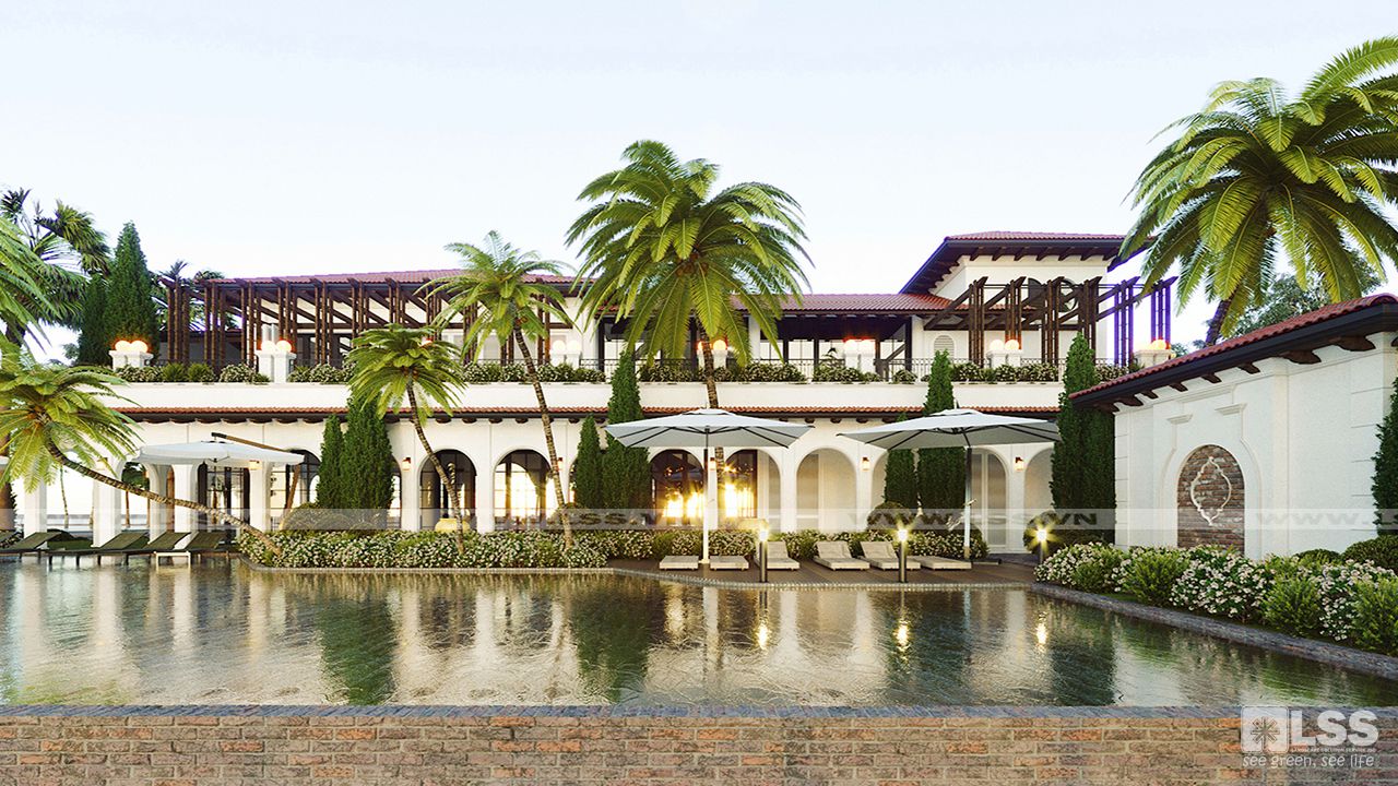 Mỗi biệt thự đều gồm trệt, lầu, và áp mái, với hồ bơi riêng tư và sân vườn trên một diện tích rộng 1000m2. Đặc trưng thiết kế với khá nhiều cửa và diện tích tương đối lớn cùng hệ thống ban công lô gia ở hầu hết các góc nhìn mang đến vẻ hiện đại sang trọng đồng thời cũng là cách đón gió trời và ánh sáng tự nhiên tốt nhất cho biệt thự. Các nhà vọng lâu và pergola cũng được xem xét vị trí đặt sao cho kết nối tốt nhất giữa công trình và cảnh quan xung quanh. Mỗi biệt thự tựa như một viên ngọc xinh đẹp nổi bật giữa lối đi lát gạch đỏ đất thân thiện, hồ bơi tràn siêu thực, các cụm cây hoa cắt tỉa theo phong cách châu Âu sang trọng cùng hàng Chà Là mang hơi hướng biển cả đã thực sự tạo nên một tổng thể “hiếm có khó tìm” giữa lòng Sài Gòn nhộn nhịp.