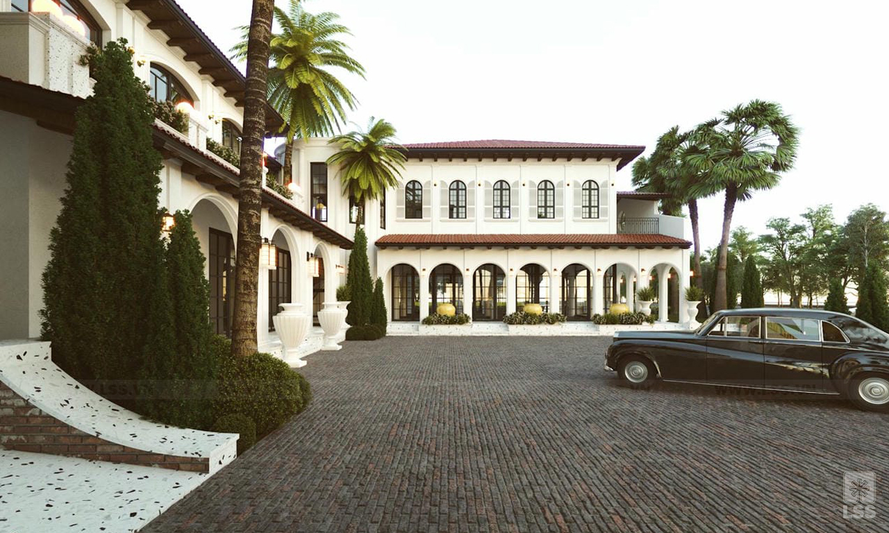 Sở hữa địa thế ven sông hiếm có, khu biệt thự không chỉ đòi hỏi hình thái thiết kế sang trọng mà còn phải thật sự bắt mắt và đẳng cấp khi nhìn từ phía bờ sông đối diện. Vì lẽ đó các kiến trúc sư quyết định lựa chọn phong cách Địa Trung Hải hiện đại – một loại hình kiến trúc Tây phương nhưng phản phất nét nhiệt đới gió mùa ở các vùng biển lãng mạn và nên thơ. Màu sắc của 168 khối nhà trung thành với tone trắng vỏ sò, các mái ngói màu san hô cũng là bảng màu thông dụng của phong cách này. Nhìn từ bên ngoài, cổng ra vào được điêu khắc tinh xảo, bên cạnh hàng rào được kết hợp tinh tế giữa vật liệu cứng cà cảnh quan mềm từ cây xanh mang đến đường nét hài hòa và thân thiện cho tổng thể.