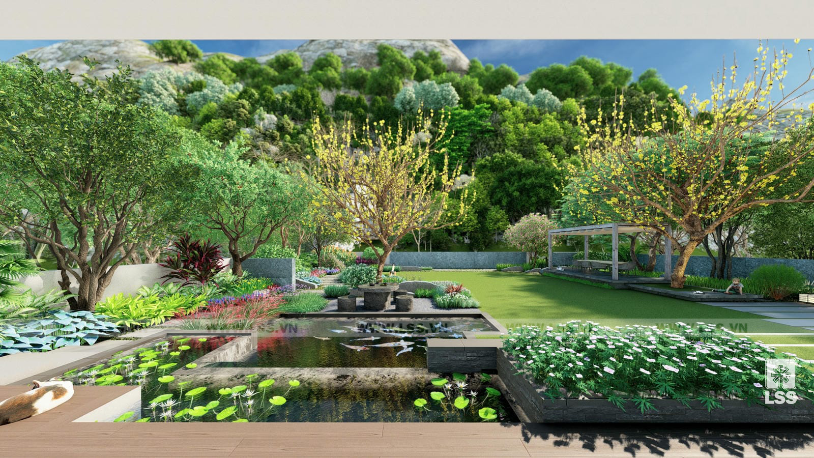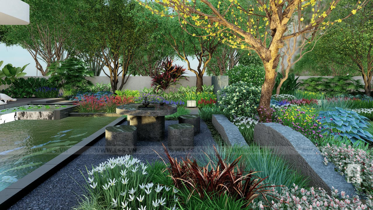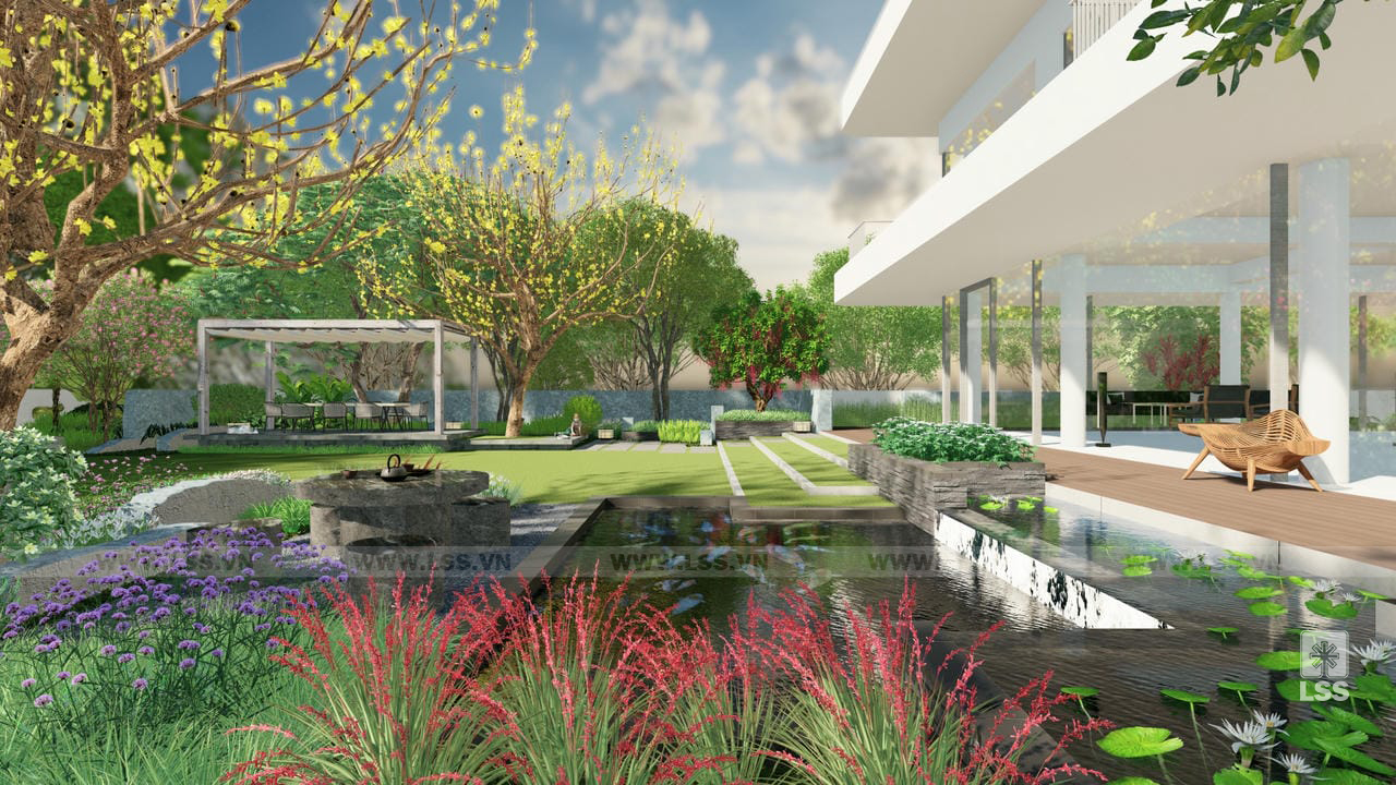 Dự án thiết kế cảnh quan Green House là một trong những dấu ấn tiêu biểu của LSS, mang theo triết lý xuyên suốt “See green, see life” nhằm kiến tạo một không gian sống giao hòa tuyệt đối giữa con người và thiên nhiên. Với thông điệp cốt lõi là kết nối tâm hồn với những giá trị nguyên bản, dự án tập trung khai thác tối đa các yếu tố tự nhiên như nước, nắng, gió và đất để tạo nên một hệ sinh thái bền vững ngay trong khuôn viên nhà ở.