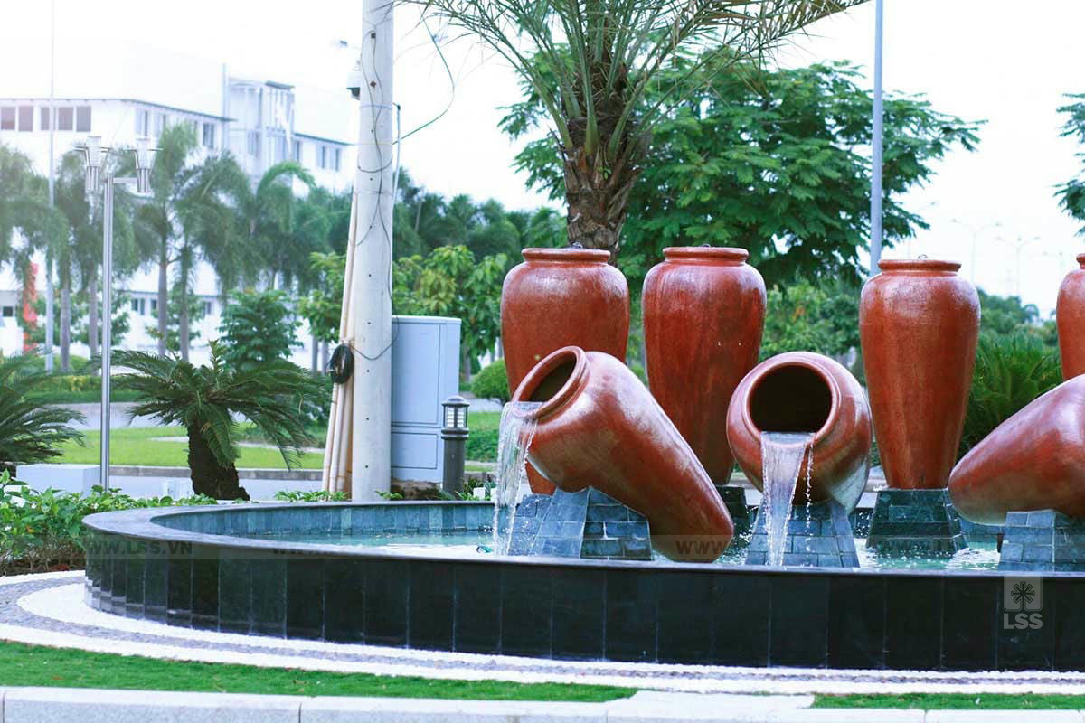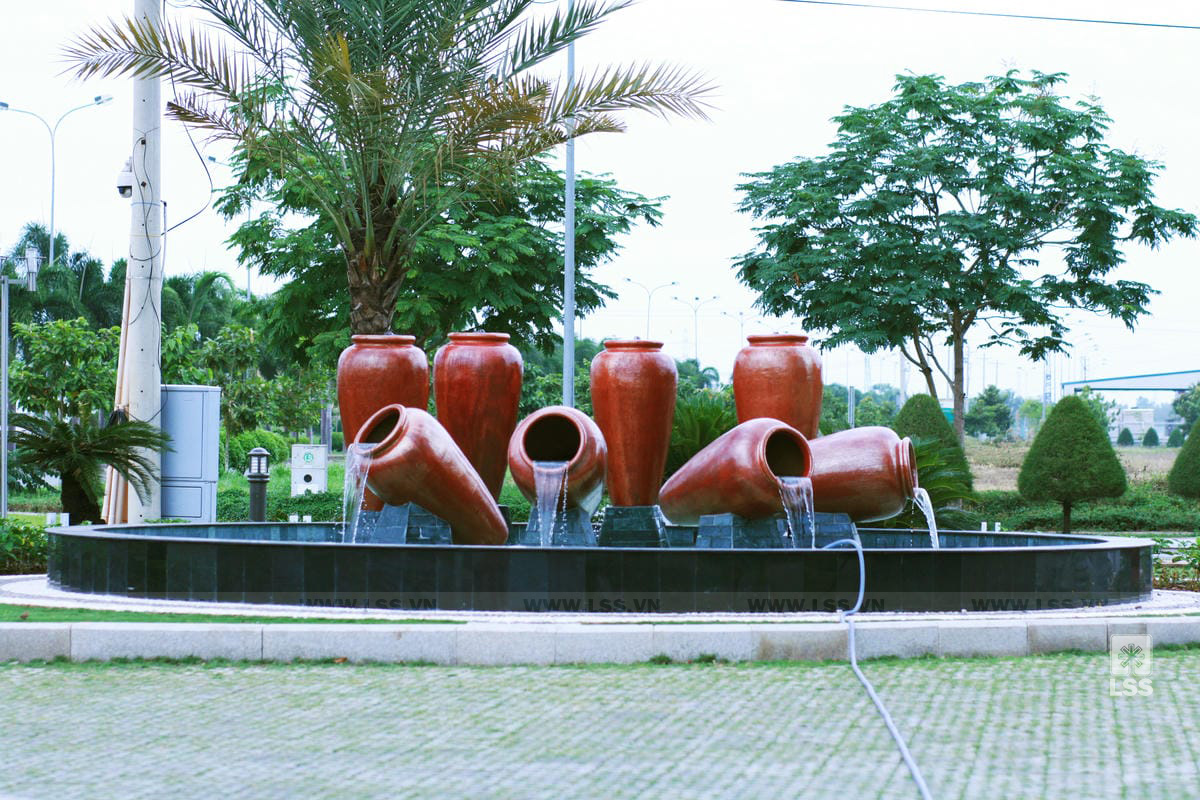 Điểm nhấn nổi bật của dự án là khu cảnh quan mặt nước, với hệ thống đài phun gồm 8 cột nước cao ấn tượng, cùng bồn cảnh quan thác tràn tạo hình chum nước do xưởng LSS trực tiếp chế tác, đảm bảo tính thẩm mỹ và độ hoàn thiện cao.
