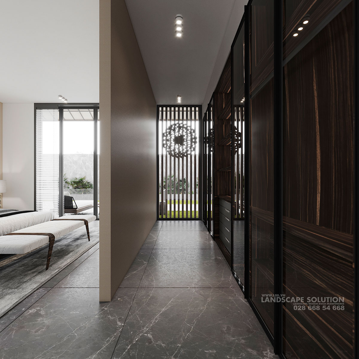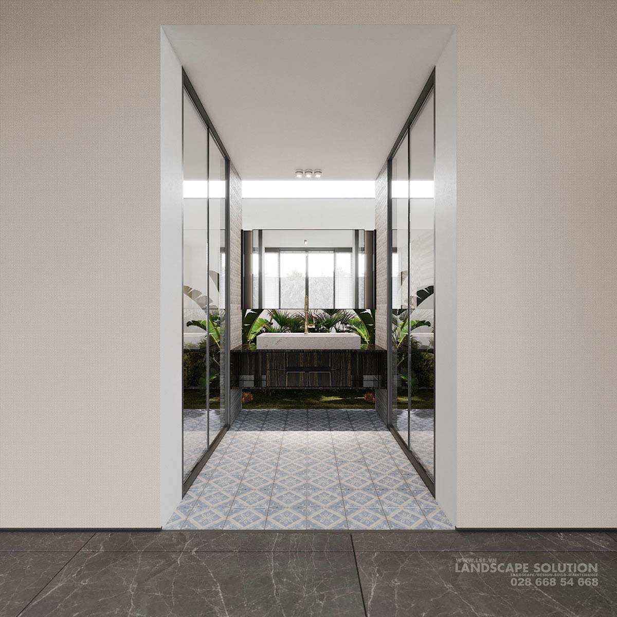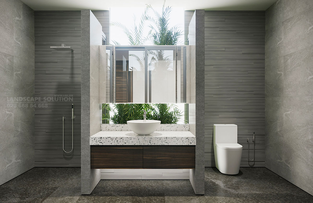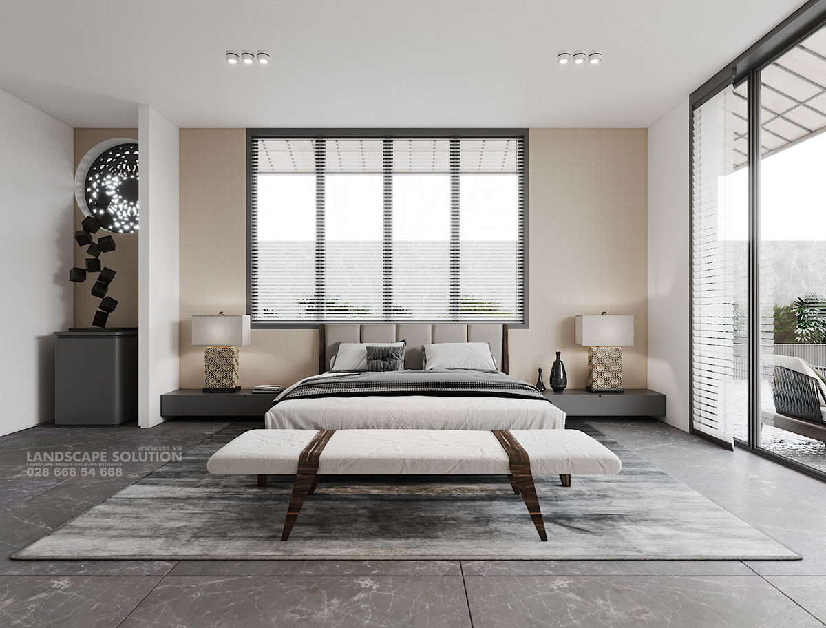 Phòng ngủ giữ trọn sự tối giản, gọn gàng và thoáng đãng, nơi mỗi buổi sáng có thể đón trọn ánh nắng và tầm nhìn xanh mát. Phòng tắm hiện đại, tinh tế với gam màu đá tự nhiên, tạo cảm giác thư giãn như đang ở resort.
