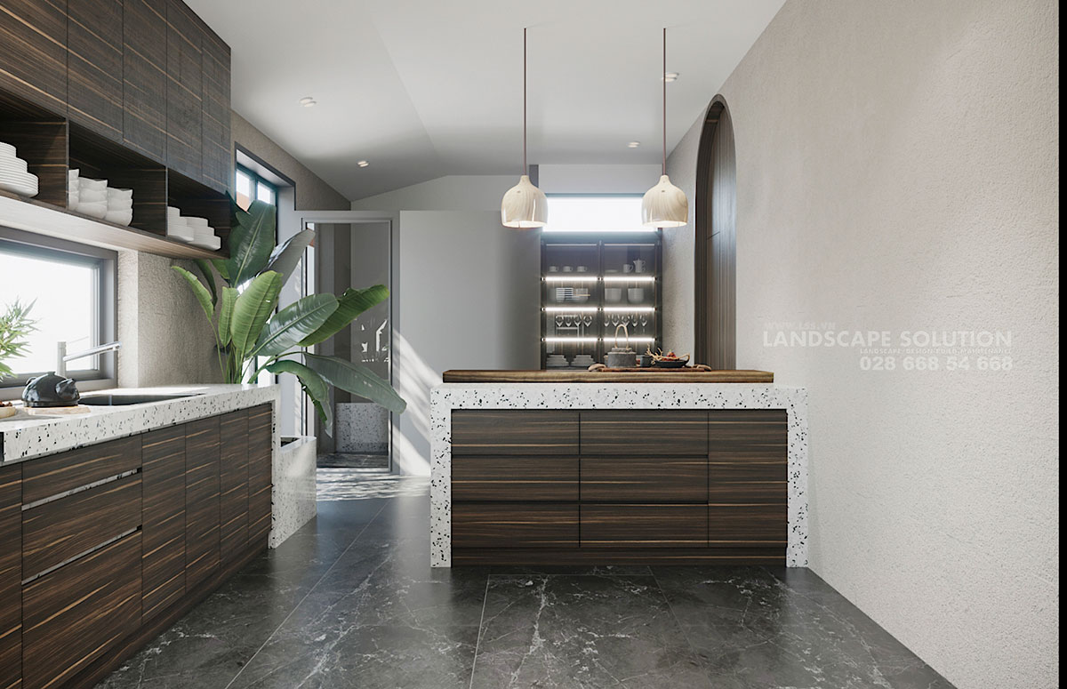 Điểm nhấn xuyên suốt thiết kế chính là sự giao hòa trong – ngoài, khi mọi chi tiết từ hình khối kiến trúc đến cách chọn vật liệu đều tôn lên thiên nhiên xung quanh. Đây không chỉ là một ngôi nhà, mà còn là chốn nghỉ dưỡng riêng tư, sang trọng và đầy cảm hứng cho gia chủ.