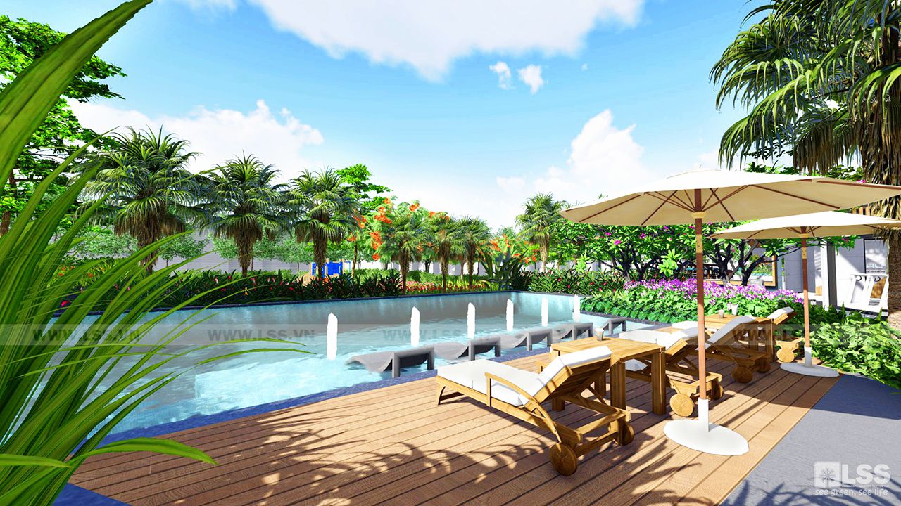 Đồng hành cùng dự án, LSS tiếp tục khẳng định vai trò tiên phong trong thiết kế và thi công cảnh quan. Ý tưởng chủ đạo tại Long Phú Villas là sự hòa quyện giữa phong vị Châu Âu cổ điển của khu dân cư với những hình khối kiến trúc hiện đại táo bạo tại khu vực Clubhouse – điểm nhấn nổi bật của toàn dự án. Phá vỡ khuôn khổ đối xứng truyền thống, các kiến trúc sư LSS đã khéo léo xử lý khối kỷ hà để công trình vừa mạnh mẽ vừa cân bằng. Không gian xanh nhiệt đới được bố trí phong phú, đa lớp, kết hợp hồ bơi ẩn mình dưới tán cây, mang đến cảm giác nghỉ dưỡng chuẩn resort 5 sao.