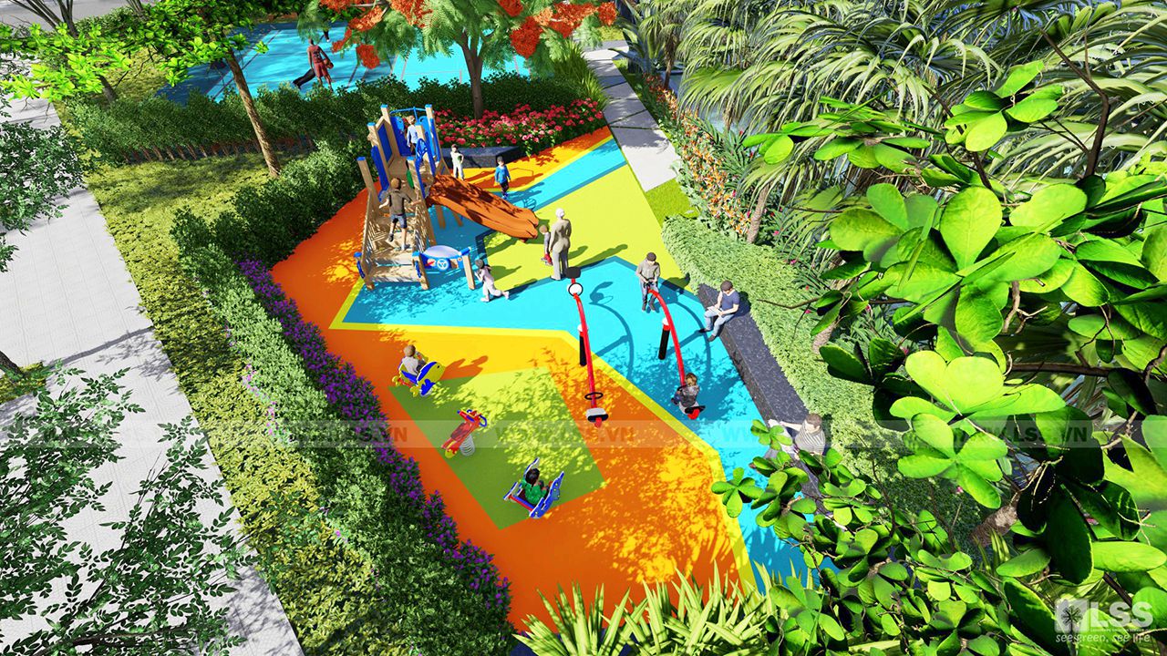 Khuôn viên công viên trung tâm và hệ thống đường dạo tiếp tục thể hiện triết lý thiết kế “tách mảng đầy ngẫu hứng” của LSS, vừa sinh động vừa đảm bảo tính kết nối. Đặc biệt, khu vui chơi trẻ em rộng rãi, sáng tạo nhưng vẫn gọn gàng trong bố cục vuông vức, góp phần hoàn thiện không gian sống đa trải nghiệm. Cùng với đó, hệ thống cây xanh vỉa hè và cảnh quan đồng bộ đã nâng tầm giá trị sang trọng của kiến trúc tân cổ điển tại Long Phú Villas.