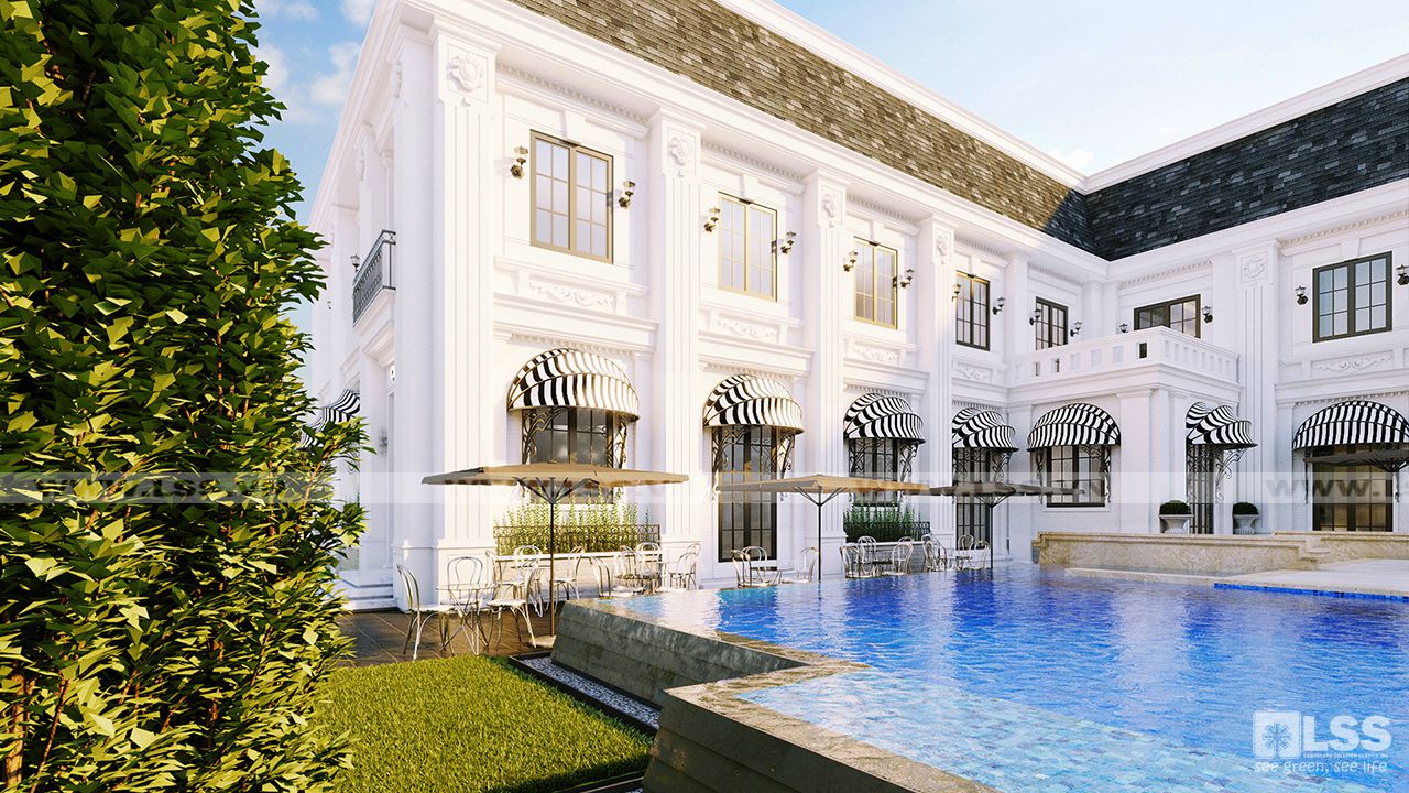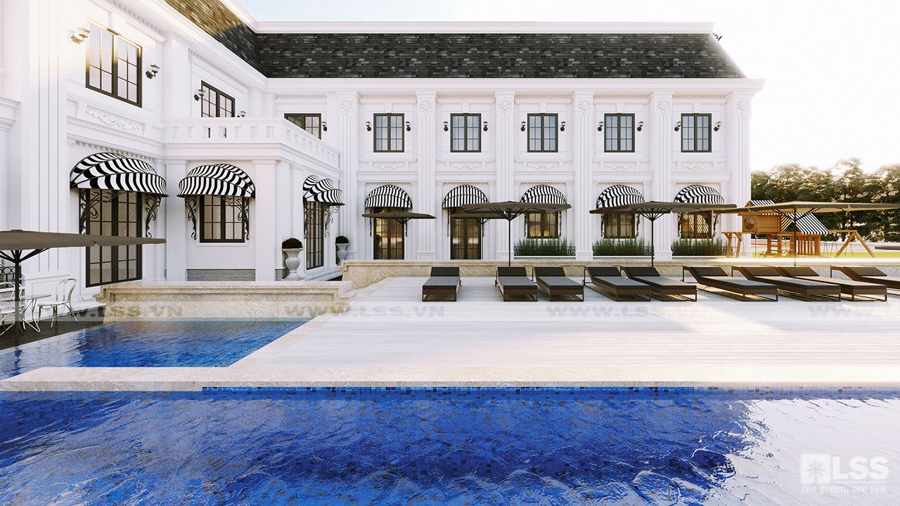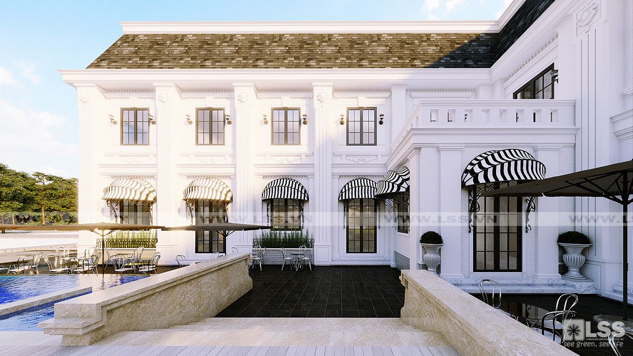 Khu vực Clubhouse của dự án chính là minh chứng cho tài năng của đội ngũ LSS không chỉ ở mảng cảnh quan mà cả mảng kiến trúc công trình, khi toàn bộ khu tổ hợp giải trí nổi bật với lối kiến trúc Châu Âu hiện đai cực kỳ xa hoa và lộng lẫy. Vẫn với tone trắng chủ đạo kết hợp cùng mái ngói xám và các điểm nhấn khung cửa gỗ xám nâu càng khiến cho tổng thể thêm phần bắt mắt. Xung quanh khu tổ hợp là hệ thống bơi tràn hiện đại, các quầy coffee sàng điệu cùng với khuôn viên cây xanh phong cách Châu Âu hiện đại chắc chắn sẽ làm thỏa mãn bất kỳ ai đặt chân đến nơi đây. Ngoài ra các khối căn hộ xung quanh với thiết kế độc đáo, đầy đủ các tiện nghi hồ bơi, cây xanh, vườn dạo chắc chắn đáp ứng tối đa nhu cầu của mỗi gia đình.