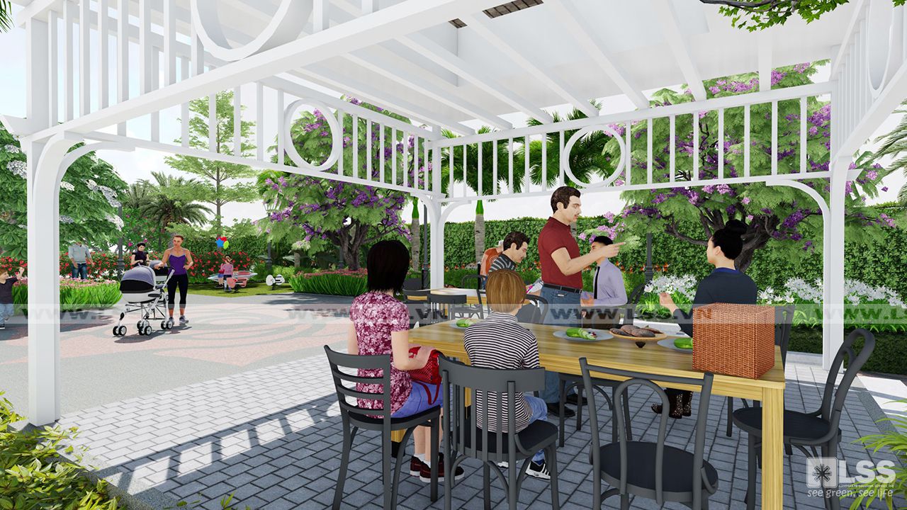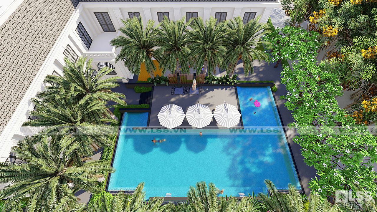 Khu vực Clubhouse của dự án chính là minh chứng cho tài năng của đội ngũ LSS không chỉ ở mảng cảnh quan mà cả mảng kiến trúc công trình, khi toàn bộ khu tổ hợp giải trí nổi bật với lối kiến trúc Châu Âu hiện đai cực kỳ xa hoa và lộng lẫy. Vẫn với tone trắng chủ đạo kết hợp cùng mái ngói xám và các điểm nhấn khung cửa gỗ xám nâu càng khiến cho tổng thể thêm phần bắt mắt. Xung quanh khu tổ hợp là hệ thống bơi tràn hiện đại, các quầy coffee sàng điệu cùng với khuôn viên cây xanh phong cách Châu Âu hiện đại chắc chắn sẽ làm thỏa mãn bất kỳ ai đặt chân đến nơi đây. Ngoài ra các khối căn hộ xung quanh với thiết kế độc đáo, đầy đủ các tiện nghi hồ bơi, cây xanh, vườn dạo chắc chắn đáp ứng tối đa nhu cầu của mỗi gia đình.