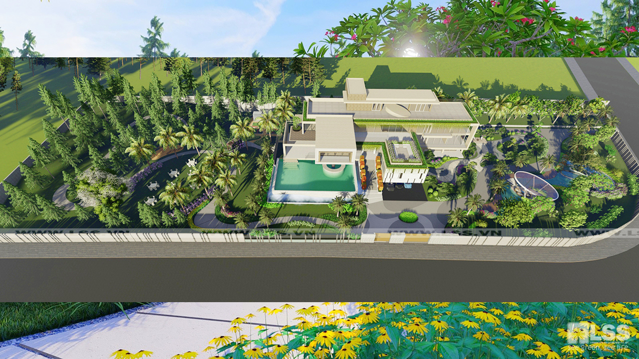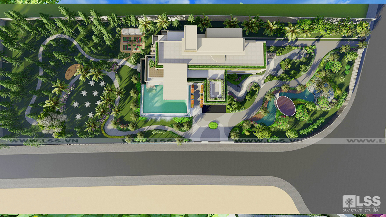 Tọa lạc trên khu đất có tổng diện tích rộng gần 1 Ha, Master Villa nổi bật với hệ thống cảnh quan hoành tráng như một công viên thực thụ từ khu vườn Nhật, hồ cá Koi đến sân tổ chức sự kiện, vườn rau, vườn cây ăn quả…