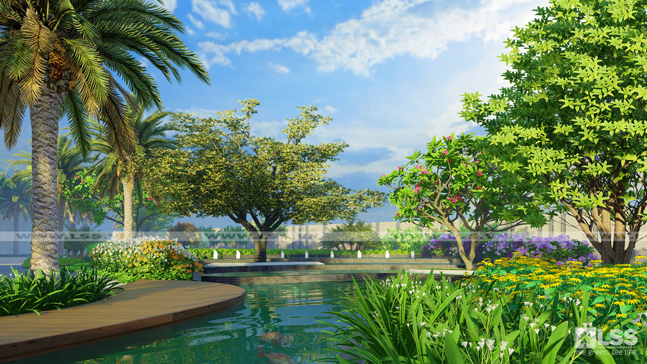 Các kiến trúc sư áp dụng phong cách thiết kế hiện đại giao hòa nét Á đông mang đến cho tổng thể cảnh quan cảm giác sang trọng nhưng cũng không kém phần tinh tế.