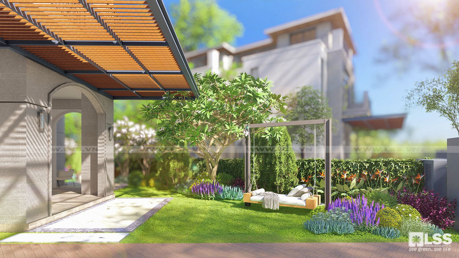 Ứng dụng phong cách thiết kế sân vườn Châu Âu, LSS mang đến hơi thở đa văn hóa cho các biệt thự nhưng vẫn dung hòa tinh tế cùng kiến trúc công trình vốn có. Những hình ảnh từ 2 căn biệt thự sân vườn Châu Âu – phong cách cực kỳ phổ biến tại các khu biệt thự cao cấp của nước ta, dưới đôi bàn tay của các Kiến trúc sư LSS lại độc đáo và mang màu sắc không thể nhầm lẫn.