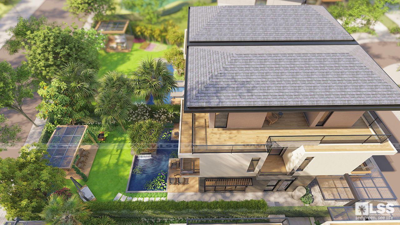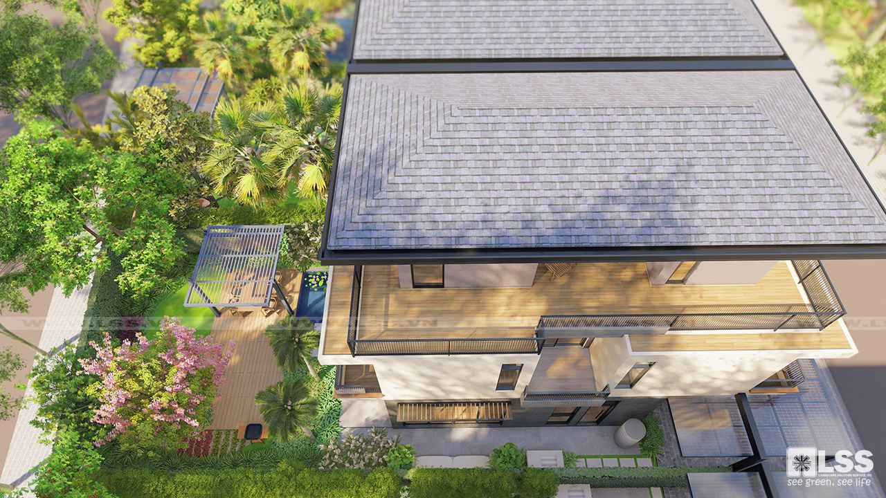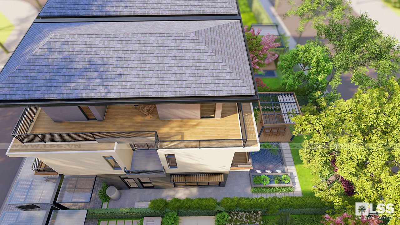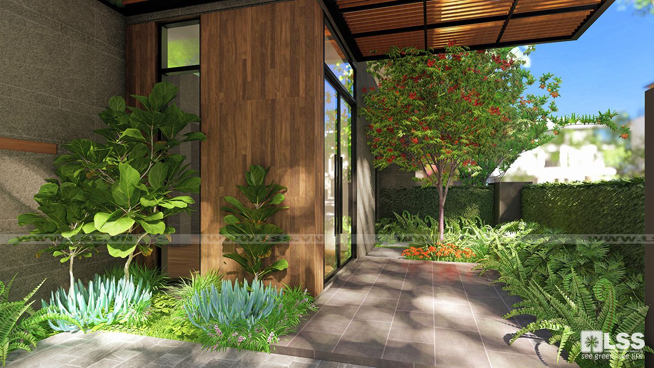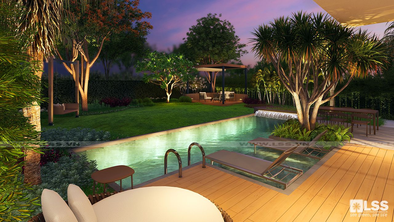 Với tư duy thiết kế mới mẻ phóng khóang, đây là hình thức dễ mang lại nhiều thiện cảm và sự lựa chọn cho gia chủ. LSS áp dụng đường nét kỷ hà vuông vức để mang đến bố cục gọn gàng cho thiết kế. Đồng thời các bãi cỏ lớn được tận dụng triệt để nhằm tạo không gian thoáng đã và nhiều ánh sáng cho khu vườn.
