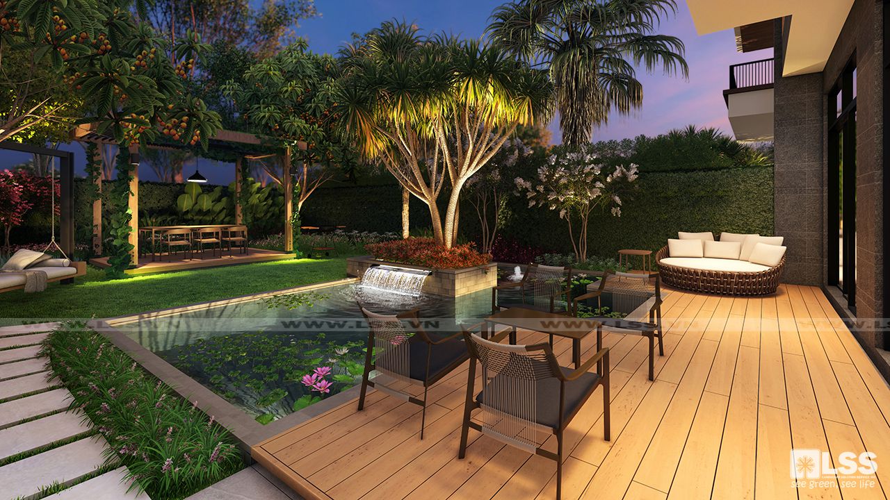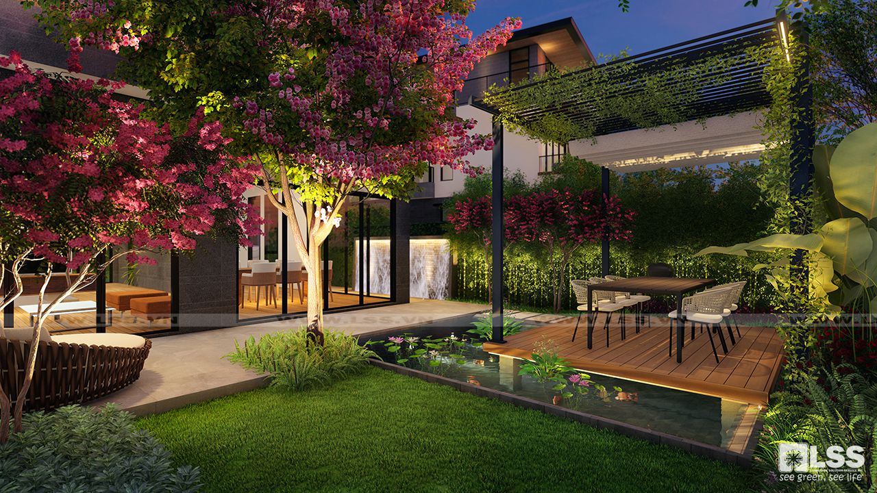 Bên cạnh đó cây to cũng được lựa chọn kỹ lưỡng với các loại cây có hình dáng gọn gàng, chiều cao phân cành lớn và phân bố hợp lý để mang đến đến bóng mát cho tổng thể sân vườn.