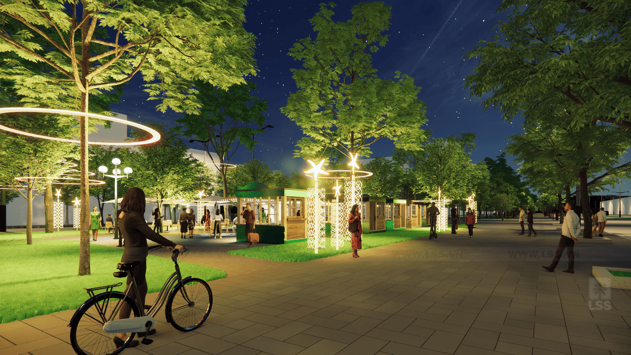 Lấy cảm hứng từ thông điệp “Khơi dậy nhịp sống phố thị”, LSS đã mang đến một tầm nhìn mới cho khu vực này bằng cách chuyển đổi không gian công viên hiện hữu thành một tổ hợp phố đi bộ năng động. Thay vì những lối đi hẹp đơn điệu, dự án tập trung mở rộng các sân chơi và quảng trường đa năng, biến nơi đây trở thành điểm khởi đầu đầy sức sống cho chuỗi phố đi bộ trung tâm thành phố. Tại Ngư Mỹ, mọi ranh giới giữa thiên nhiên và kiến trúc dường như được xóa nhòa khi hệ thống cây xanh lâu năm vẫn được giữ gìn trọn vẹn, cộng sinh hài hòa cùng những tiện ích hiện đại.