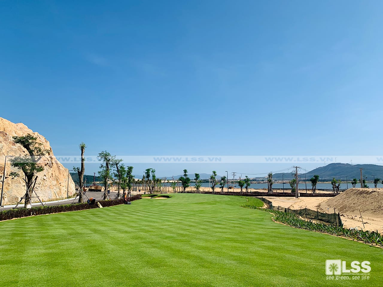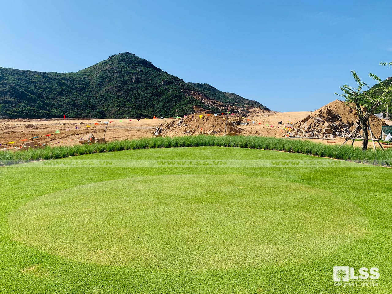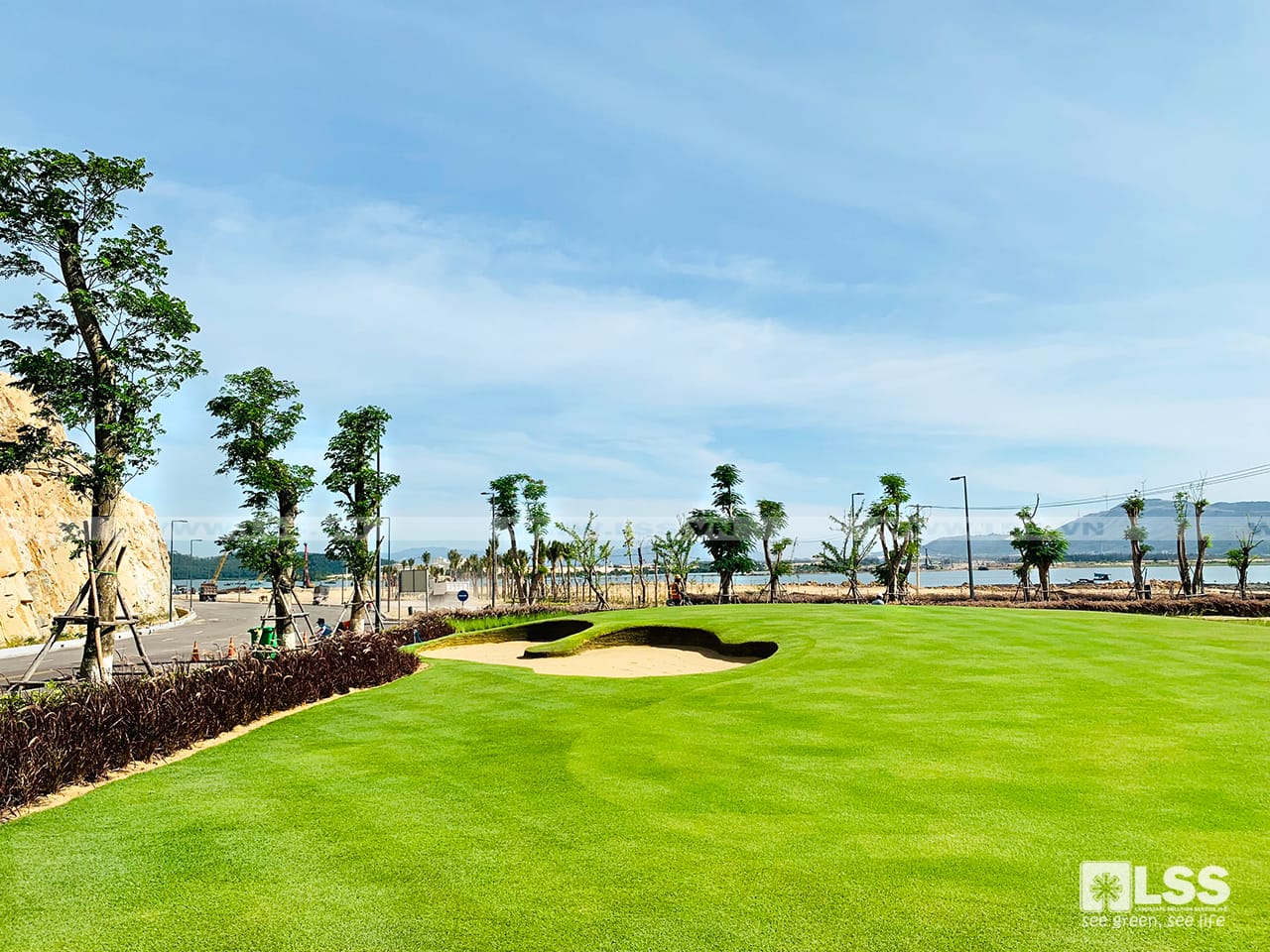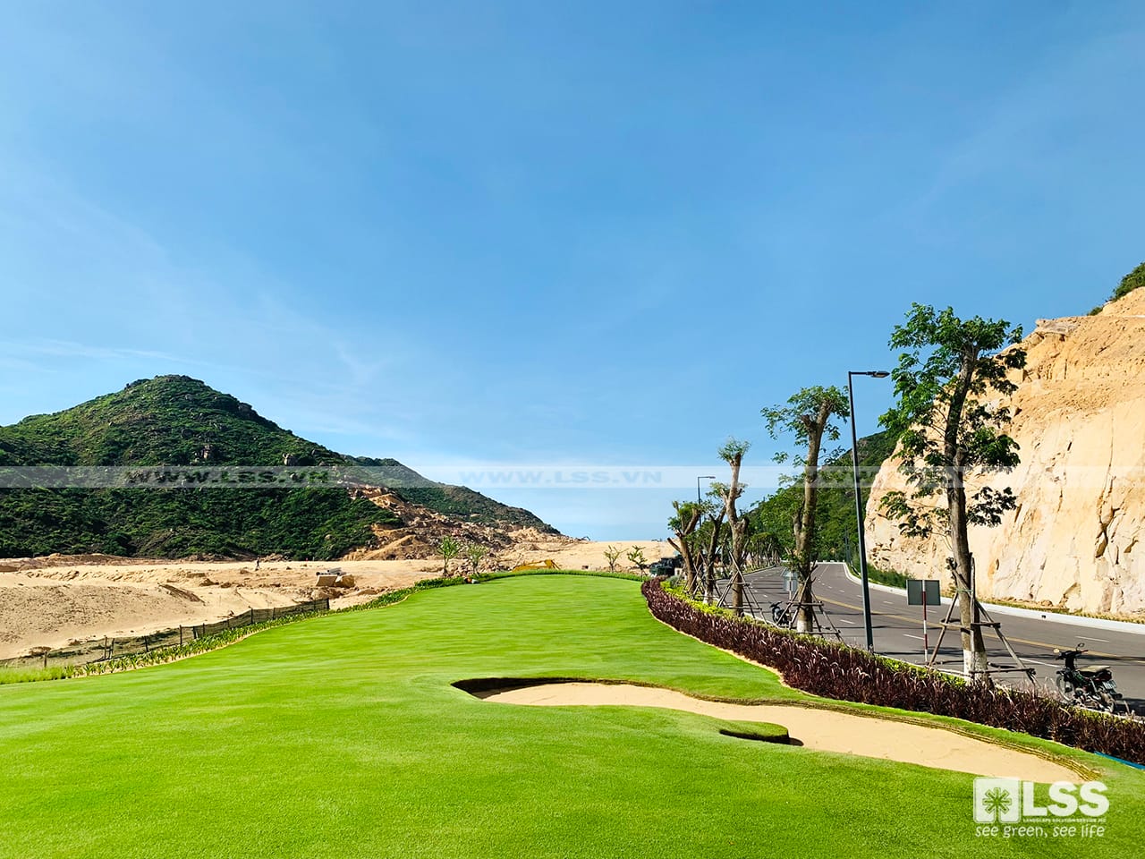 Với tương lai xây dựng hệ thống Sân Golf 18 lỗ chuyên nghiệp tại dự án MERRY QUY NHƠN thì một khu vực mockup cần phải chất lượng, tiêu chuẩn và phải sở hữu một hệ thống cỏ mượt mà, xanh tốt, bền bỉ theo thời gian. Vì thế, 1.282 m2 cỏ Zeon & 270 m2 cỏ Primo đã được chọn thi công cho lỗ thứ 1 của sân – một trong cái loại cỏ Golf tốt nhất đến từ Nhà cung cấp chuyên nghiệp được Cục sở hữu trí tuệ thuộc bộ khoa học công nghệ công nhận.