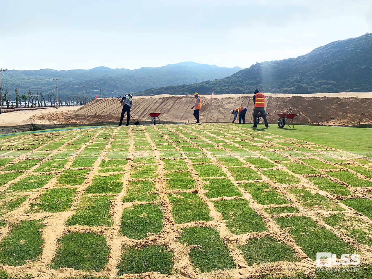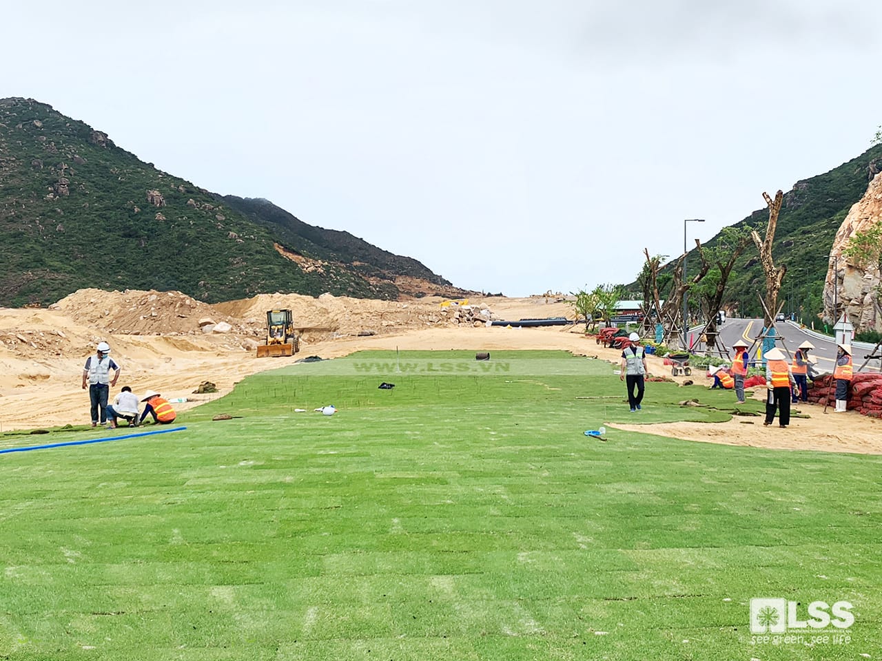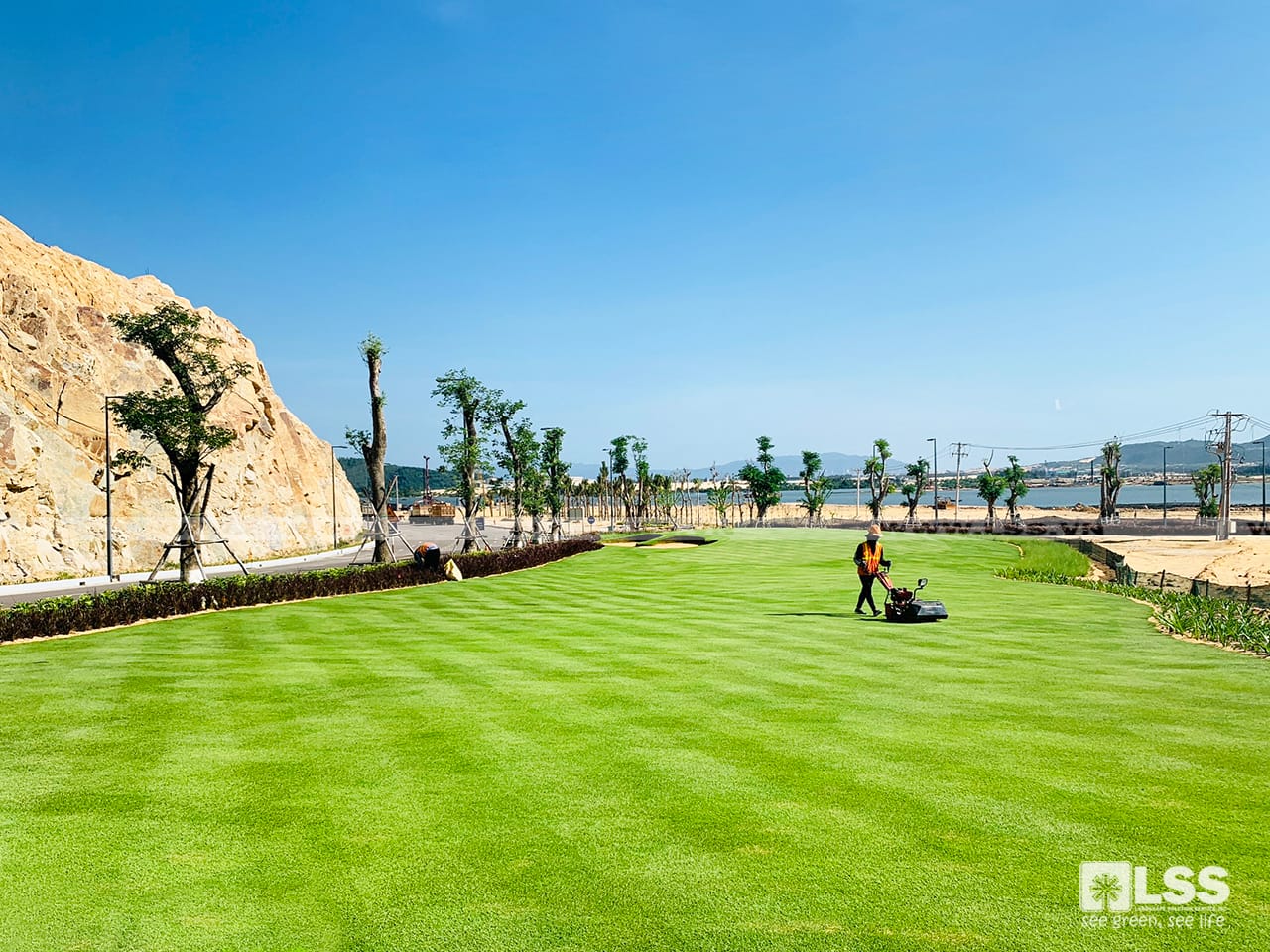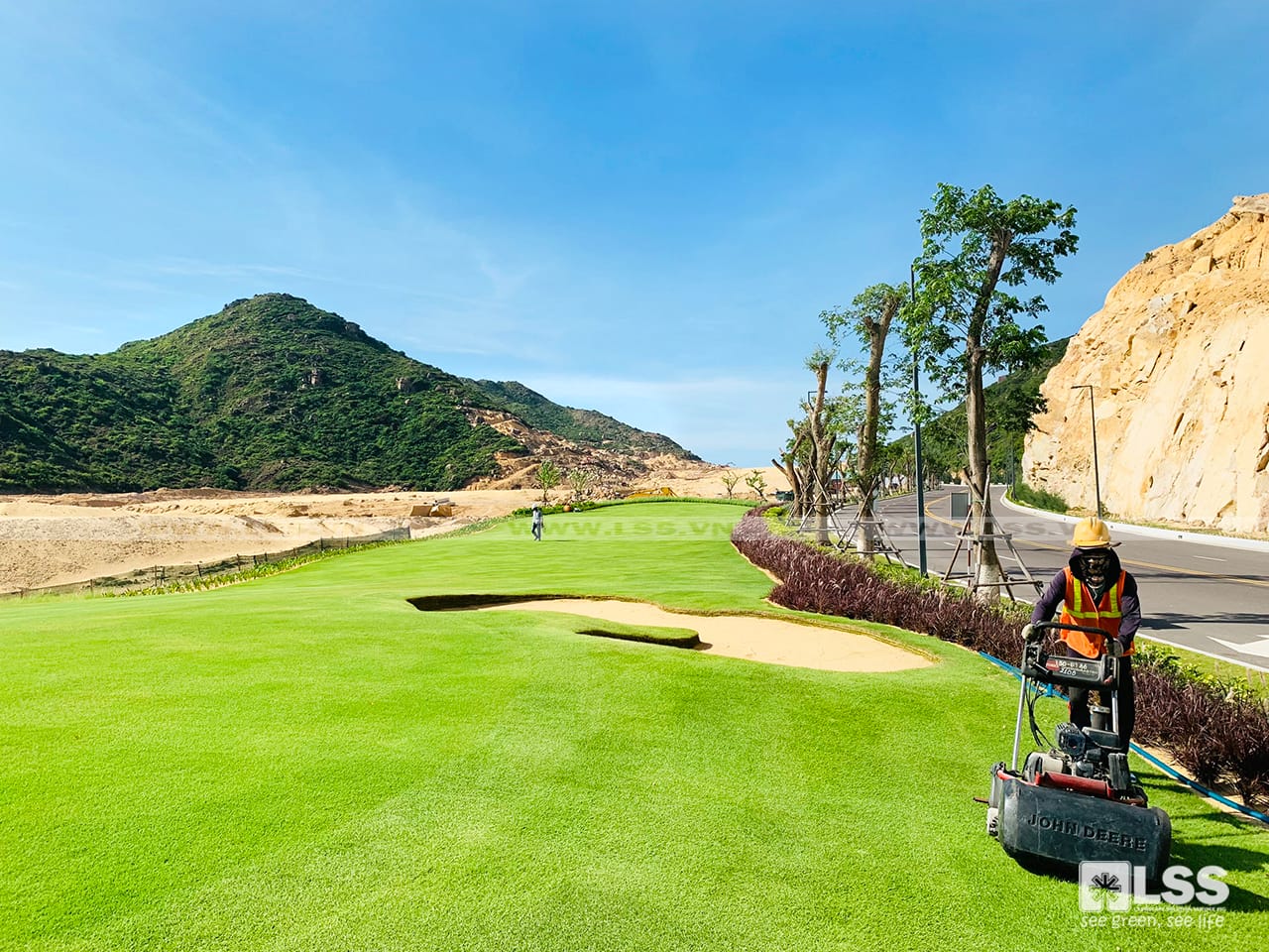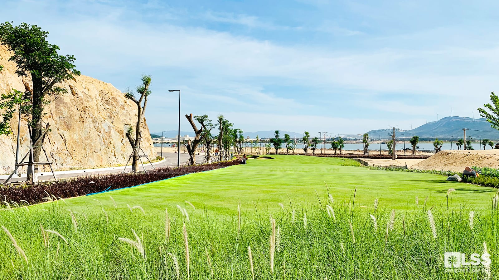 Với tương lai xây dựng hệ thống Sân Golf 18 lỗ chuyên nghiệp tại dự án MERRY QUY NHƠN thì một khu vực mockup cần phải chất lượng, tiêu chuẩn và phải sở hữu một hệ thống cỏ mượt mà, xanh tốt, bền bỉ theo thời gian. Vì thế, 1.282 m2 cỏ Zeon & 270 m2 cỏ Primo đã được chọn thi công cho lỗ thứ 1 của sân – một trong cái loại cỏ Golf tốt nhất đến từ Nhà cung cấp chuyên nghiệp được Cục sở hữu trí tuệ thuộc bộ khoa học công nghệ công nhận.