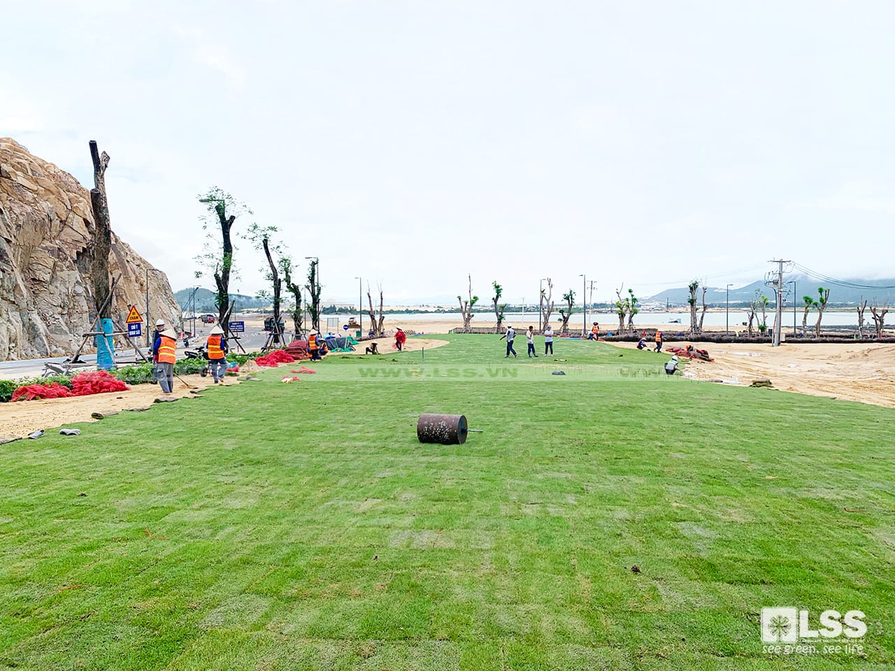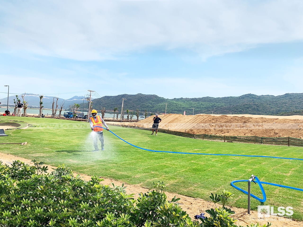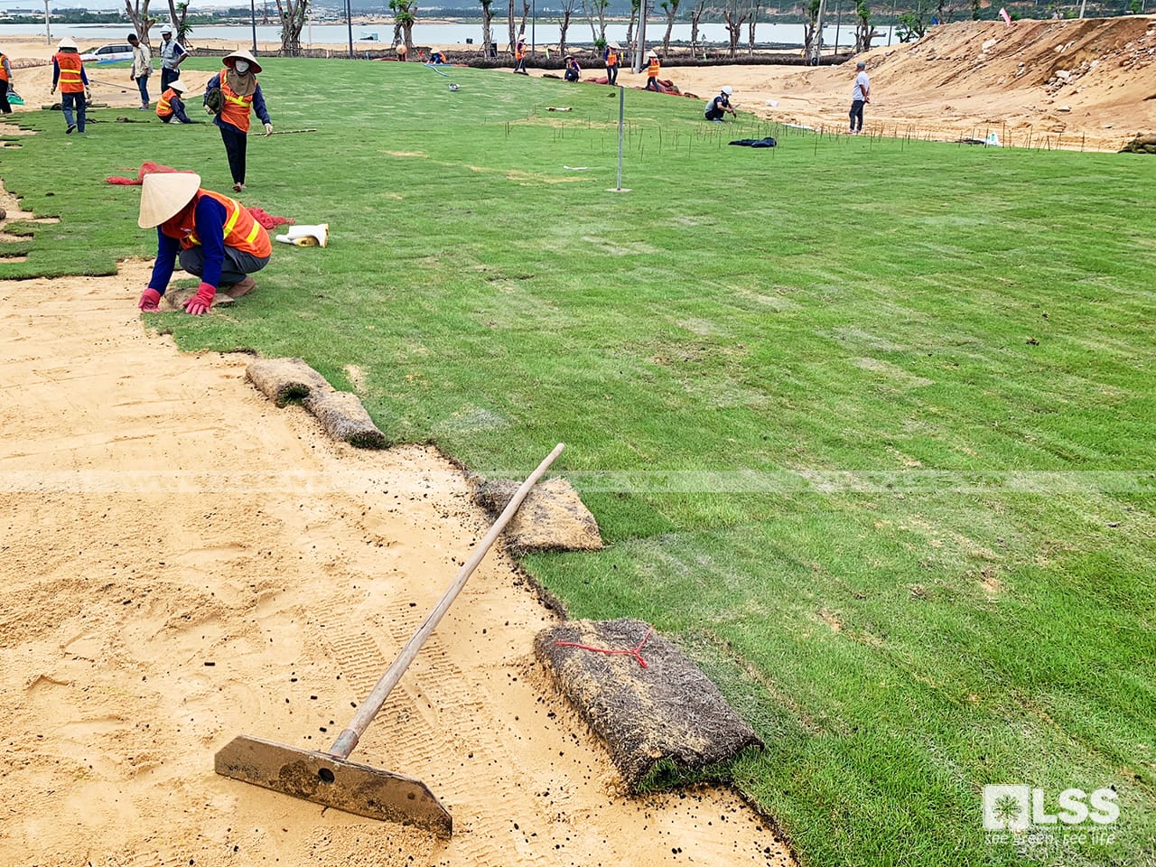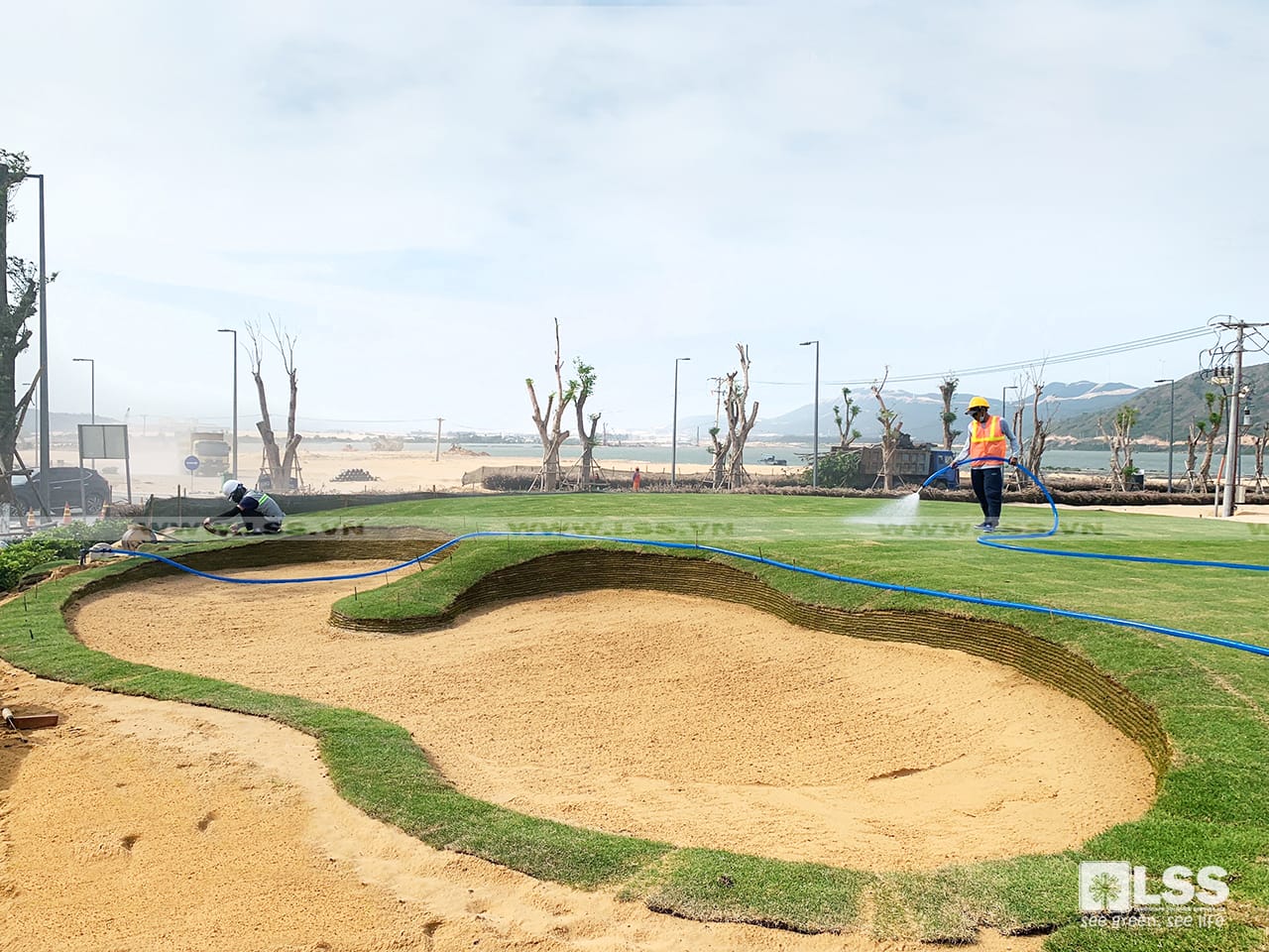Với tương lai xây dựng hệ thống Sân Golf 18 lỗ chuyên nghiệp tại dự án MERRY QUY NHƠN thì một khu vực mockup cần phải chất lượng, tiêu chuẩn và phải sở hữu một hệ thống cỏ mượt mà, xanh tốt, bền bỉ theo thời gian. Vì thế, 1.282 m2 cỏ Zeon & 270 m2 cỏ Primo đã được chọn thi công cho lỗ thứ 1 của sân – một trong cái loại cỏ Golf tốt nhất đến từ Nhà cung cấp chuyên nghiệp được Cục sở hữu trí tuệ thuộc bộ khoa học công nghệ công nhận.