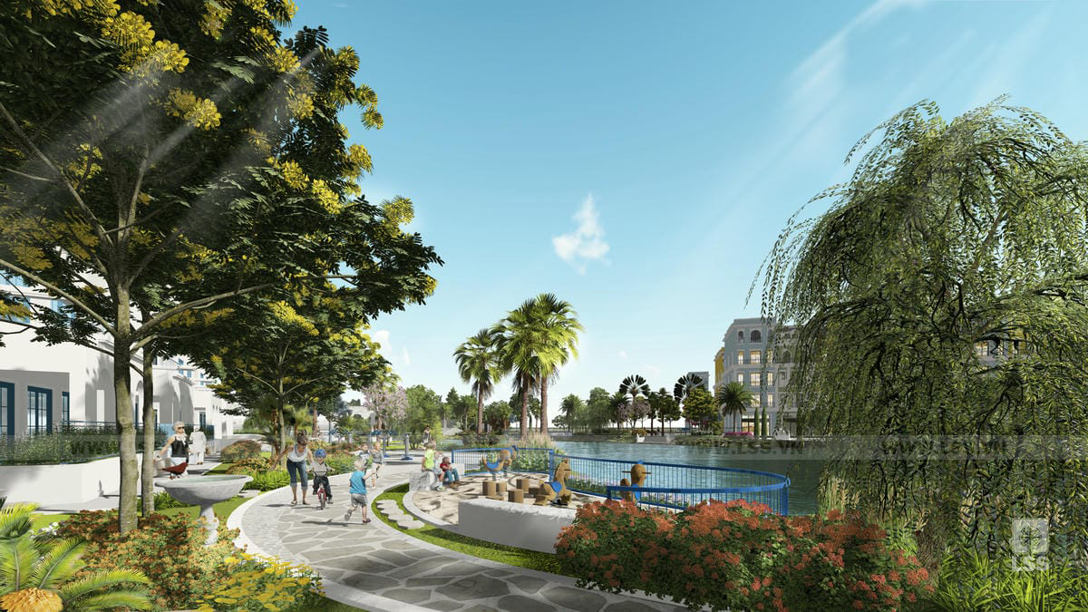 Kiến trúc cảnh quan sử dụng gam màu trắng – xanh đặc trưng của Địa Trung Hải, kết hợp terracotta, đá cubic, gỗ và hệ cây xanh đa dạng theo từng phân khu. Các tiện ích như sân chơi trẻ em, vườn chữa lành, khu BBQ, bến thuyền kayak hay đường dạo ven kênh được bố trí hài hòa, tạo nên môi trường sống sinh thái – nghệ thuật – cảm xúc hiếm có. Canal d’Amour không chỉ là một dự án cảnh quan mà còn là hành trình kể chuyện bằng không gian, mang lại trải nghiệm sống đầy thi vị cho cư dân.