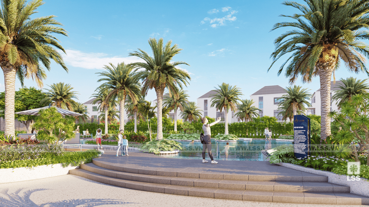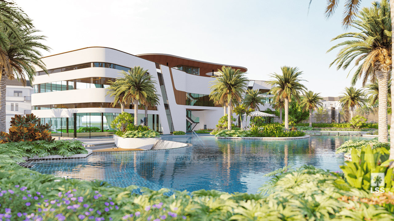 Điểm nhấn đặc biệt của công trình chính là sự chuyển tiếp mượt mà giữa các tầng không gian. Những khu vườn mái xanh mướt không chỉ giúp làm mát tòa nhà mà còn tạo nên một tổng thể hài hòa, nơi kiến trúc và cảnh quan như hòa làm một. Từ bên trong Clubhouse, cư dân có thể phóng tầm mắt bao quát toàn cảnh hồ bơi xanh ngắt và những lối đi rợp bóng cây – thành quả của quá trình thiết kế cảnh quan đồng bộ mà LSS đã thực hiện.